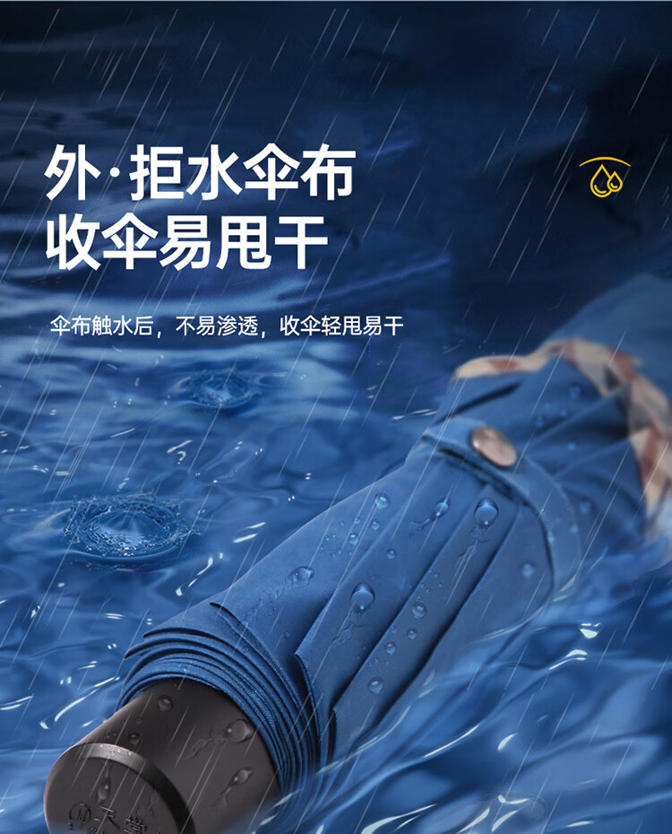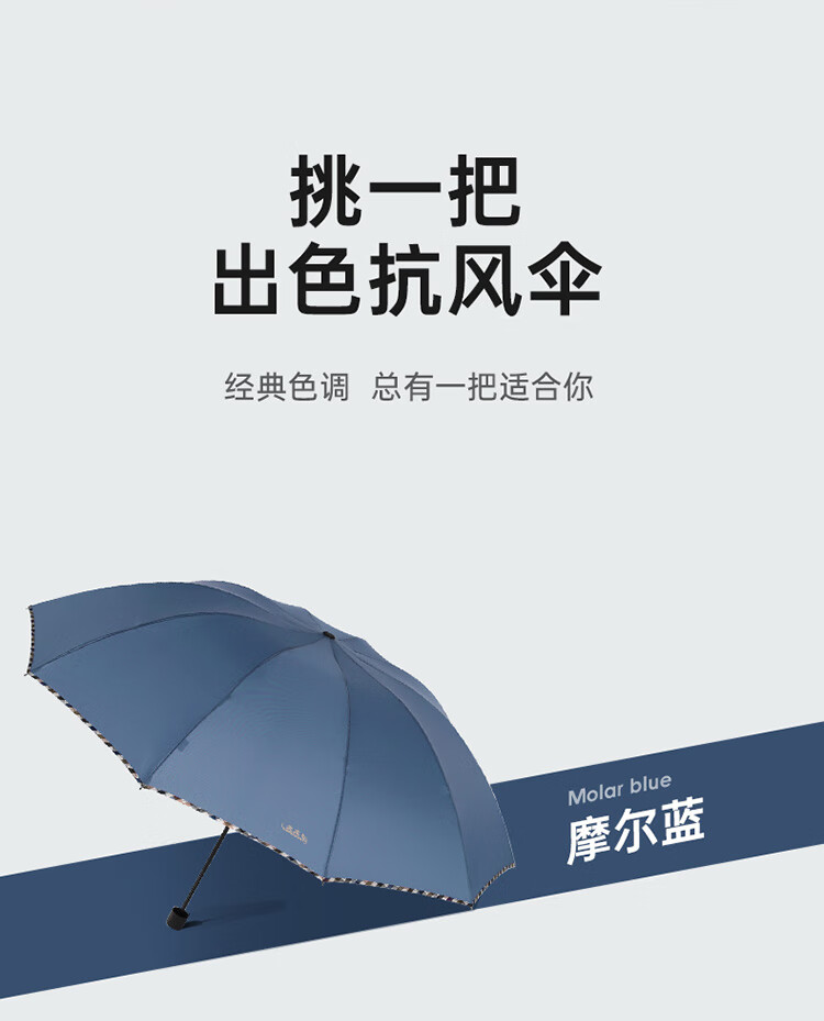 天堂【30721EJDX】 三折双人大伞 10骨抗风雨伞-/把 摩尔蓝