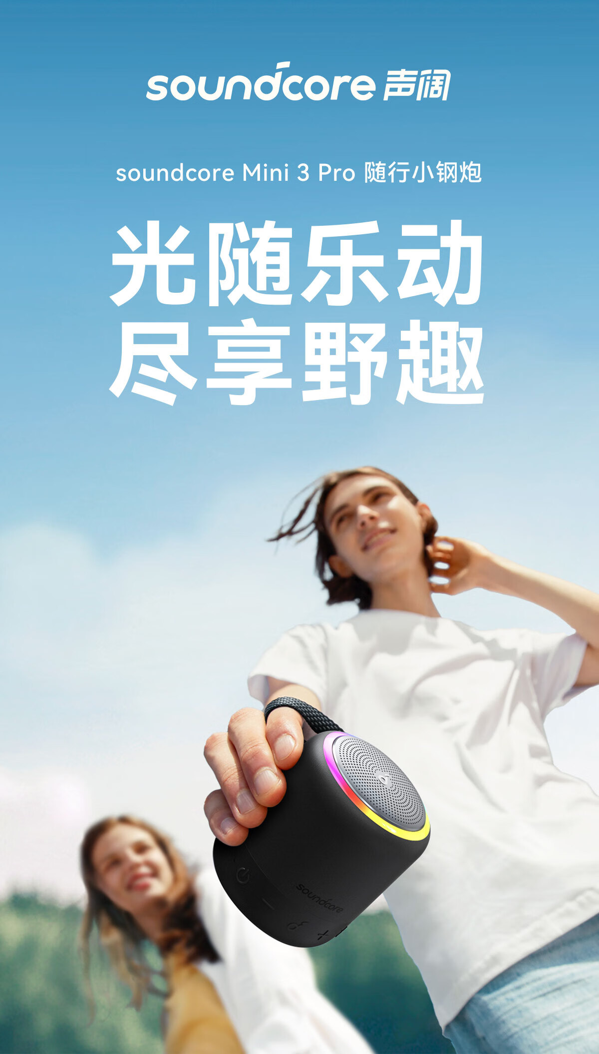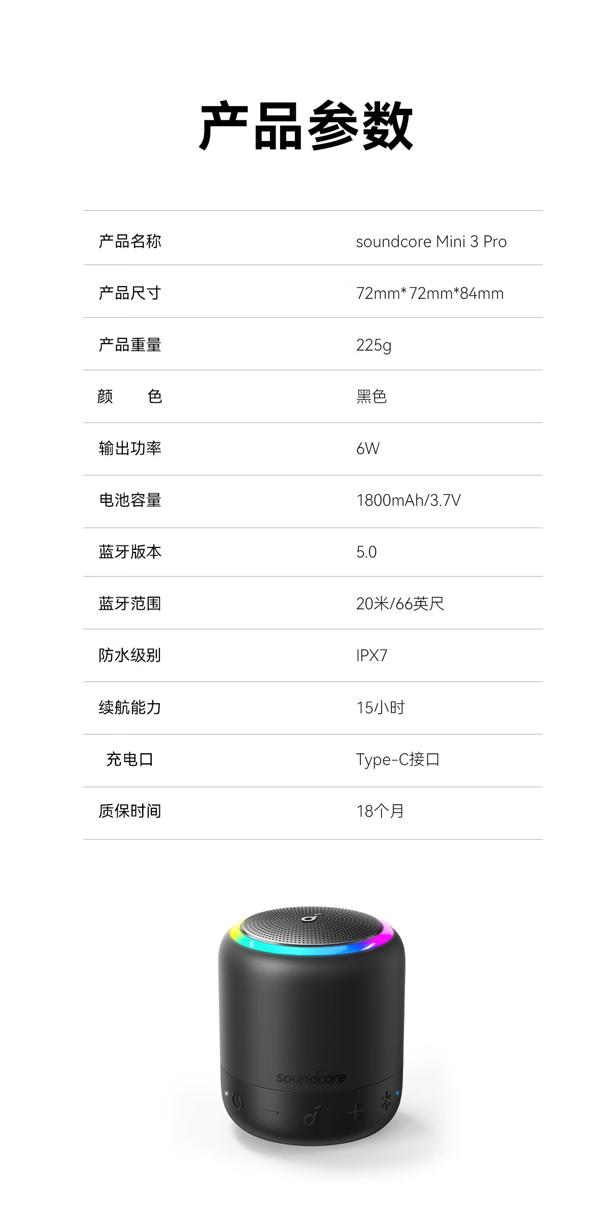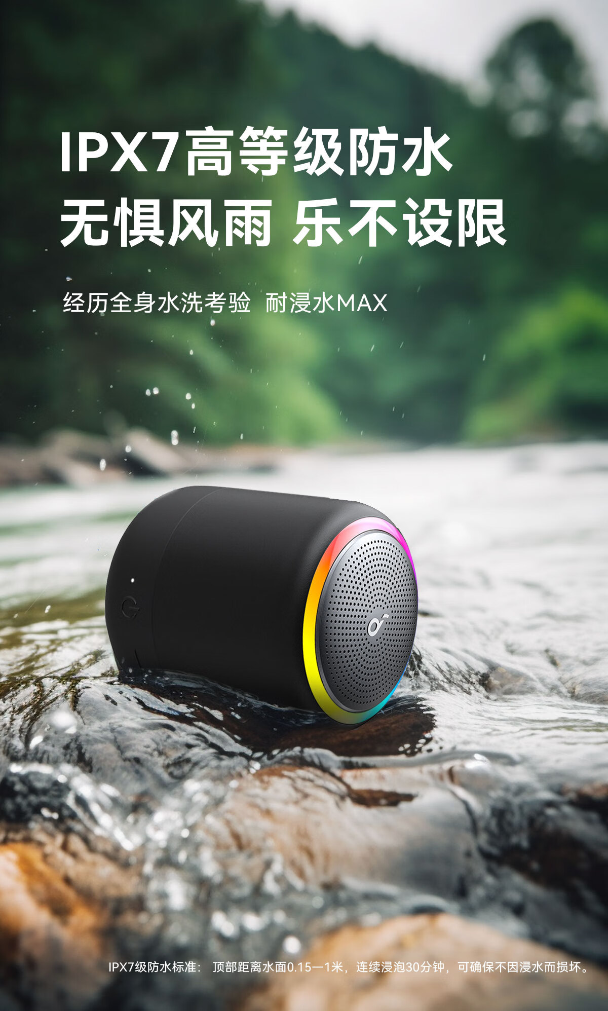 声阔 Soundcore Mini3Pro随行小钢炮户外露营便携式蓝牙音箱低音炮迷你音响IPX7防水 黑色