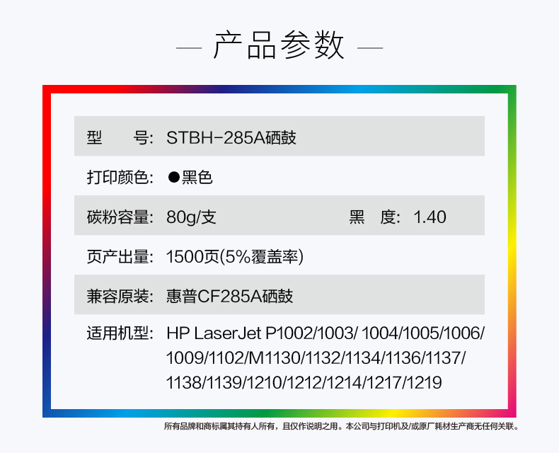 史泰博 STBH-285A 打印量约1500页 适用HP LaserJet P1002/1003等 硒鼓 (计价单位:只) 黑色 黑色