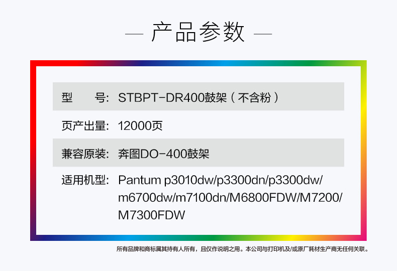 史泰博 STBPT-DR400 打印量约12000页 适用Pantum p3010dw/p3300dn等 鼓架(不含粉) (计价单位:只) 黑色 黑色