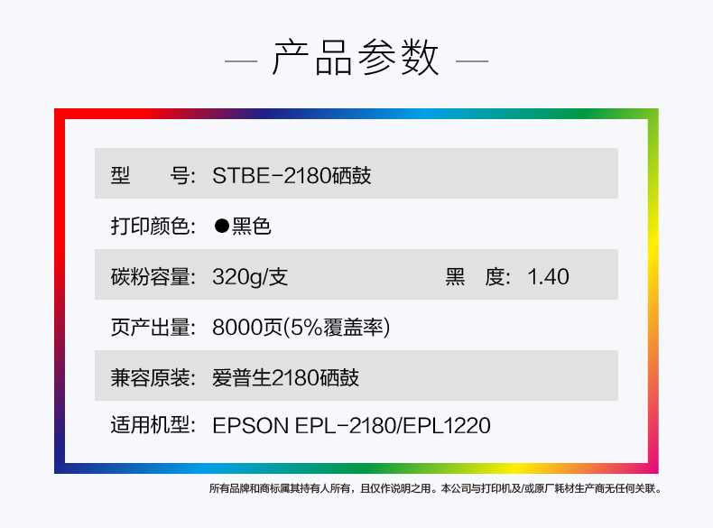 史泰博 STBE-2180 打印量约8000页 适用EPL-2180 EPL1220 硒鼓 (计价单位:只) 黑色 黑色