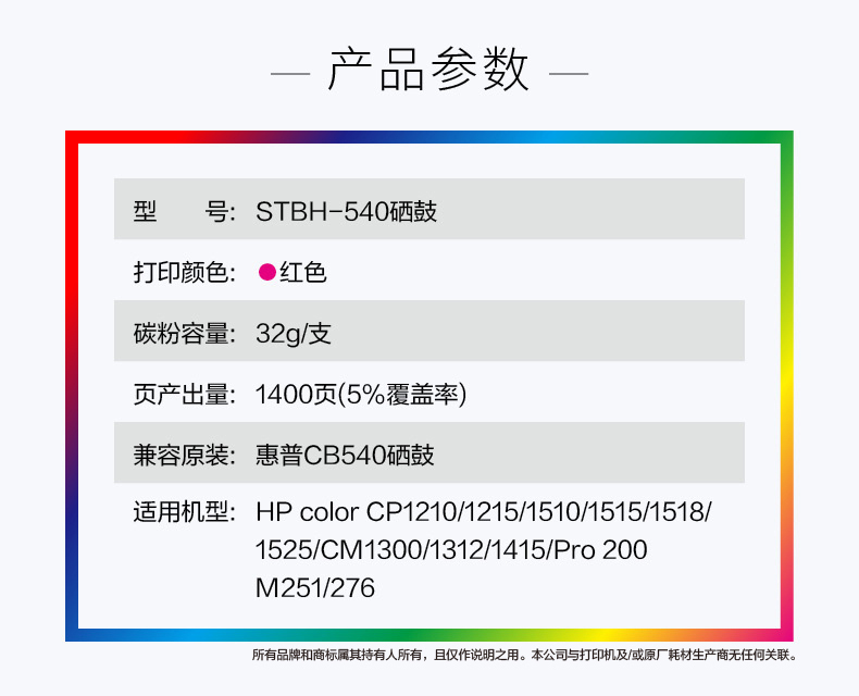 史泰博 STBH-540 打印量约1400页 适用HP color CP1210/CM1300/1415/Pro等等 硒鼓 (计价单位:只) 红色 红色