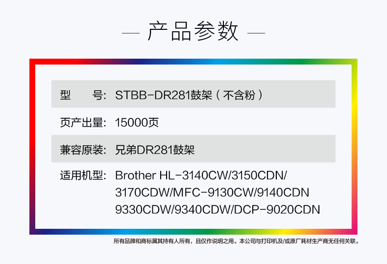 史泰博 STBB-DR281 打印量约15000页 适用Brother HL-3140CW 3150CDN等 鼓架(不含粉) (计价单位:只) 黑色 黑色