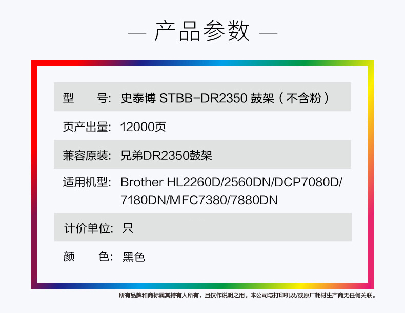 史泰博 STBB-DR2350 打印量约12000页 适用Brother HL2260D 2560DN等 鼓架(不含粉) (计价单位:只) 黑色 黑色