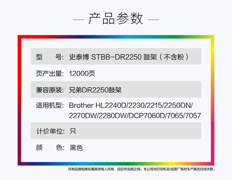 史泰博 STBB-DR2250 打印量约12000页 适用Brother HL2240D/2230等 鼓架(不含粉) (计价单位:只) 黑色 黑色