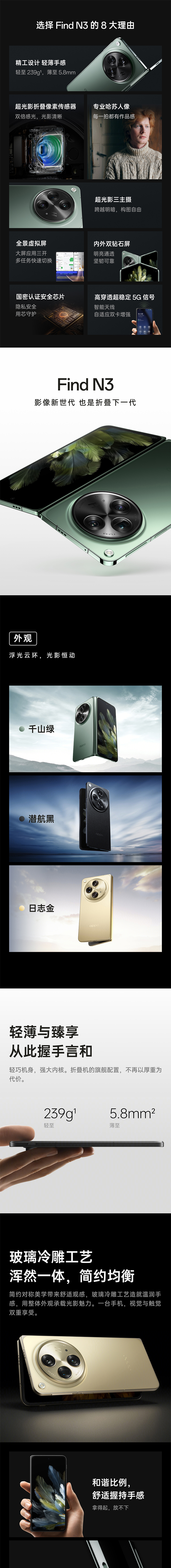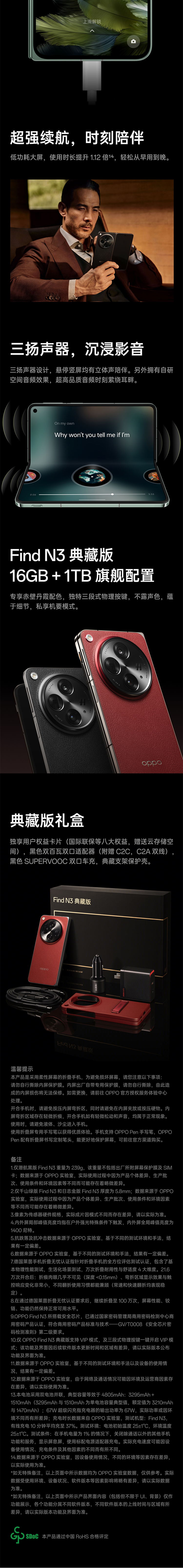 OPPO Find N3 超光影三主摄 国密认证安全芯片 专业哈苏人像 5G 超轻薄折叠屏手机 台 潜航黑(典藏版) 16GB+1TB