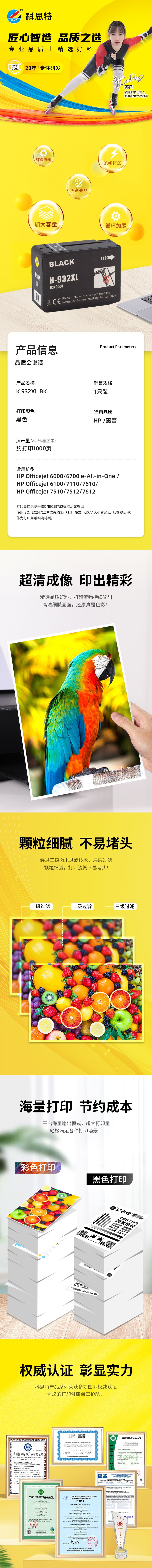 科思特 933XL BK 大容量打印量1000页适用惠普Officejet 6600 墨盒 (计价单位:盒) 黑色 黑色
