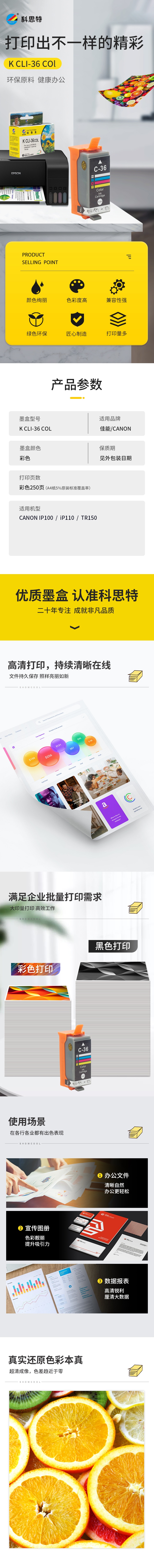 科思特 CLI-36C 9.4ml 适用佳能CANON IP100 墨盒 (计价单位:盒) 彩色 彩色