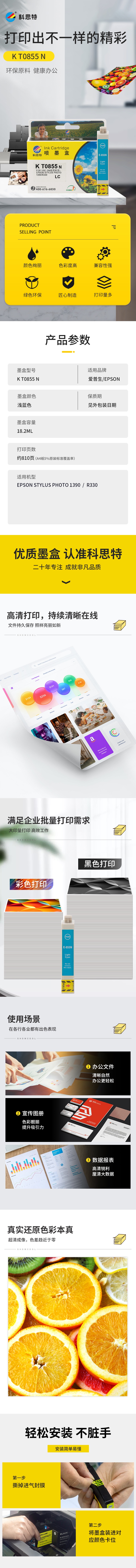 科思特 EPSON T0855 15ml 适用爱普生 R330 1390 墨盒 (计价单位:盒) 浅蓝色 蓝色
