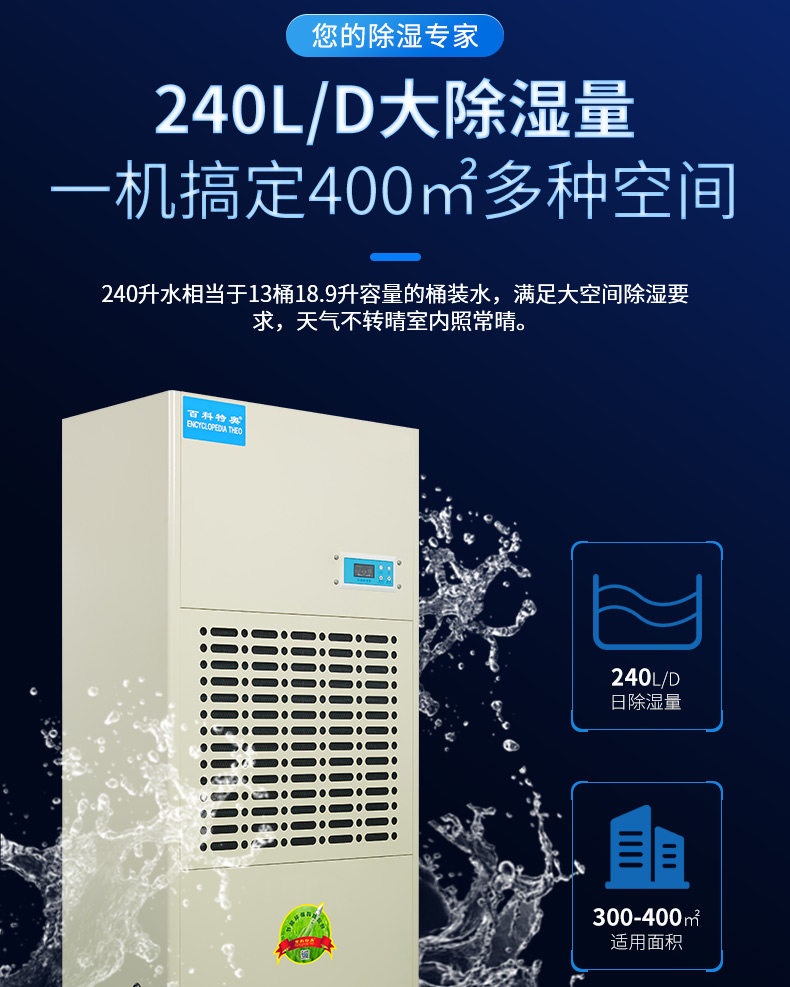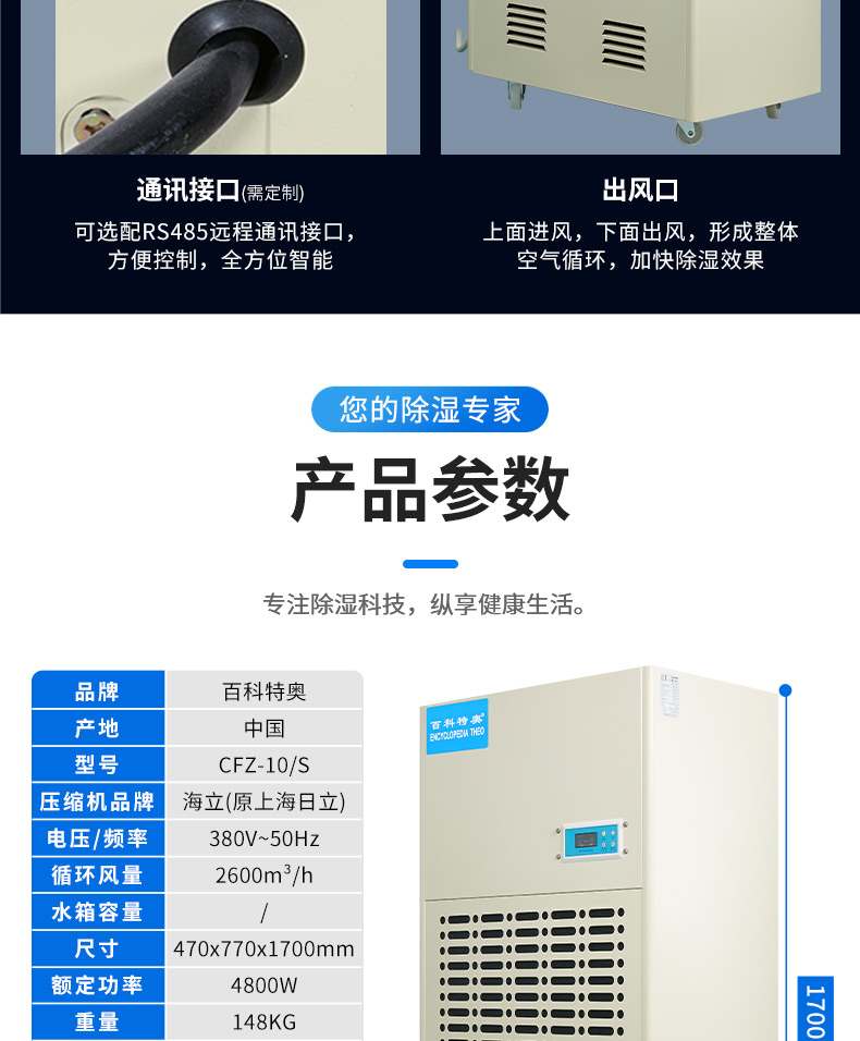 百科特奥(ENCYCLOPEDIA THEO)工业除湿机CFZ-10/S 240L/D抽湿量商用抽湿 白色