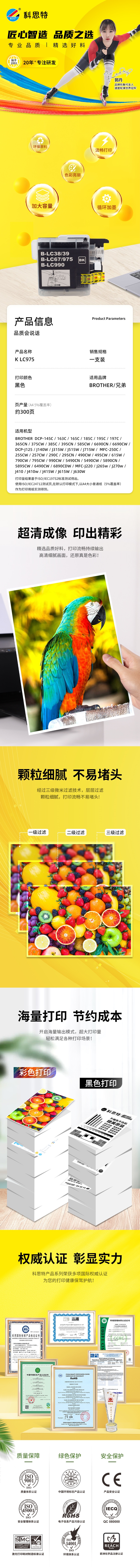 科思特 LC975 18ml 适用兄弟MFC-J220 J410 J125 墨盒 (计价单位:盒) 黑色 黑色