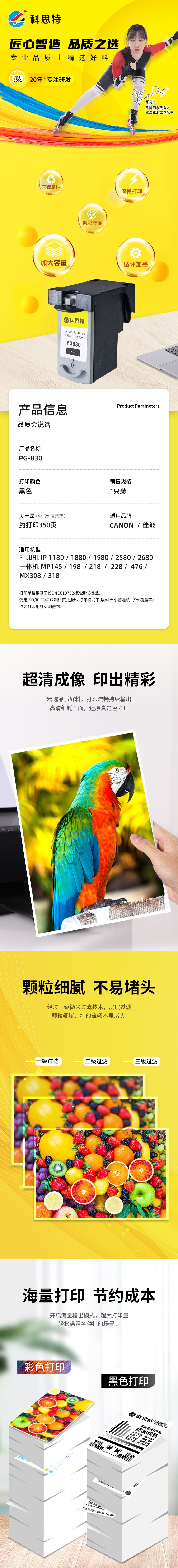 科思特 PG-830 打印量400页 适用佳能打印机 iP1180 1980 墨盒 (计价单位:盒) 黑色 黑色