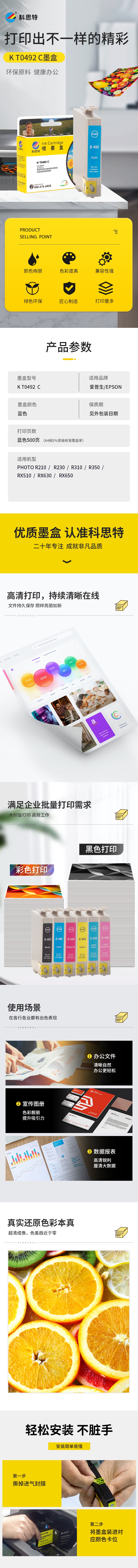 科思特 T0492 20ml 适用爱普生R210 230 310 350 RX510 630 650 墨盒 (计价单位:盒) 青色 青色