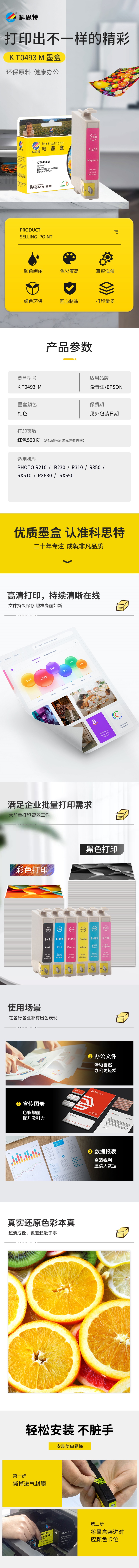 科思特 T0493 20ml 适用爱普生R210 230 310 350 RX510 630 650 墨盒 (计价单位:盒) 红色 红色