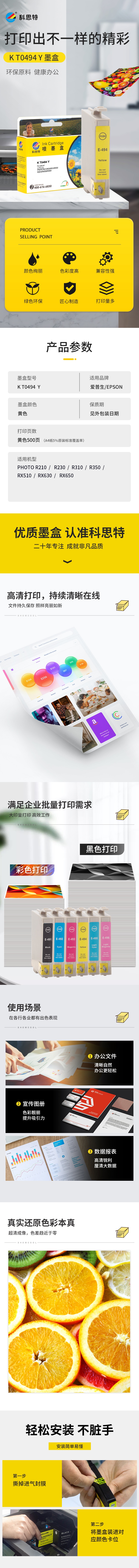 科思特 T0494 20ml 适用爱普生R210 230 310 350 RX510 630 650 墨盒 (计价单位:盒) 黄色 黄色