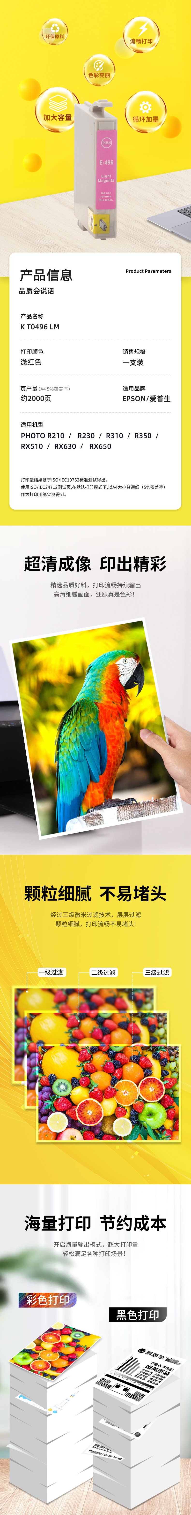 科思特 T0496 20ml 适用爱普生R210 230 310 350 RX510 630 650 墨盒 (计价单位:盒) 浅红 红色