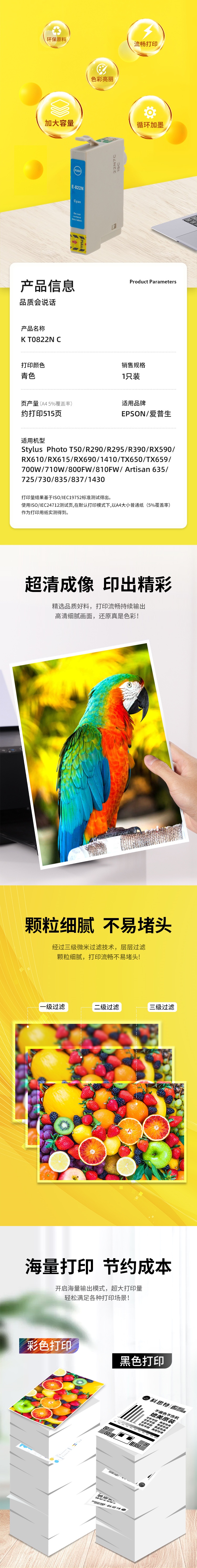 科思特 T0822 14ml 适用爱普生 R270 390 RX590 610 720 墨盒 (计价单位:盒) 青色 青色