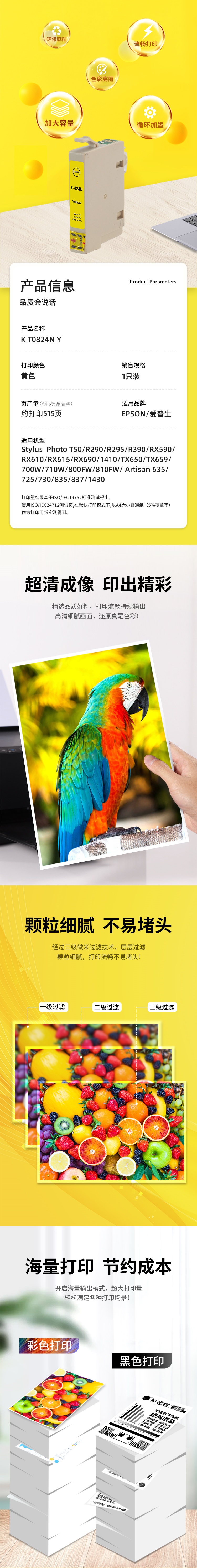 科思特 T0824 14ml 适用爱普生 R270 390 RX590 610 720 墨盒 (计价单位:盒) 黄色 黄色