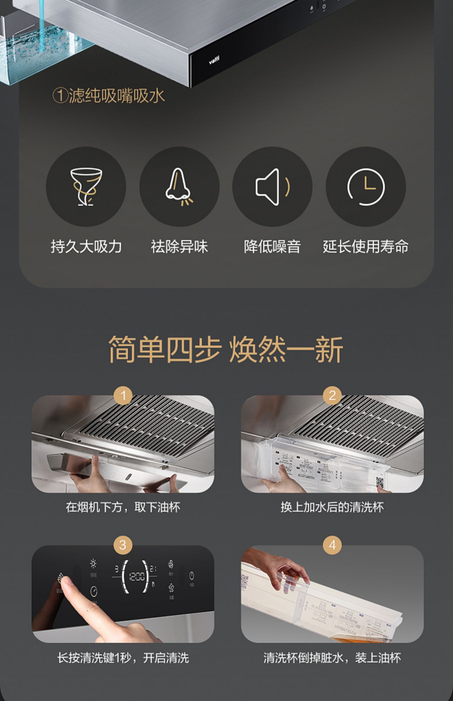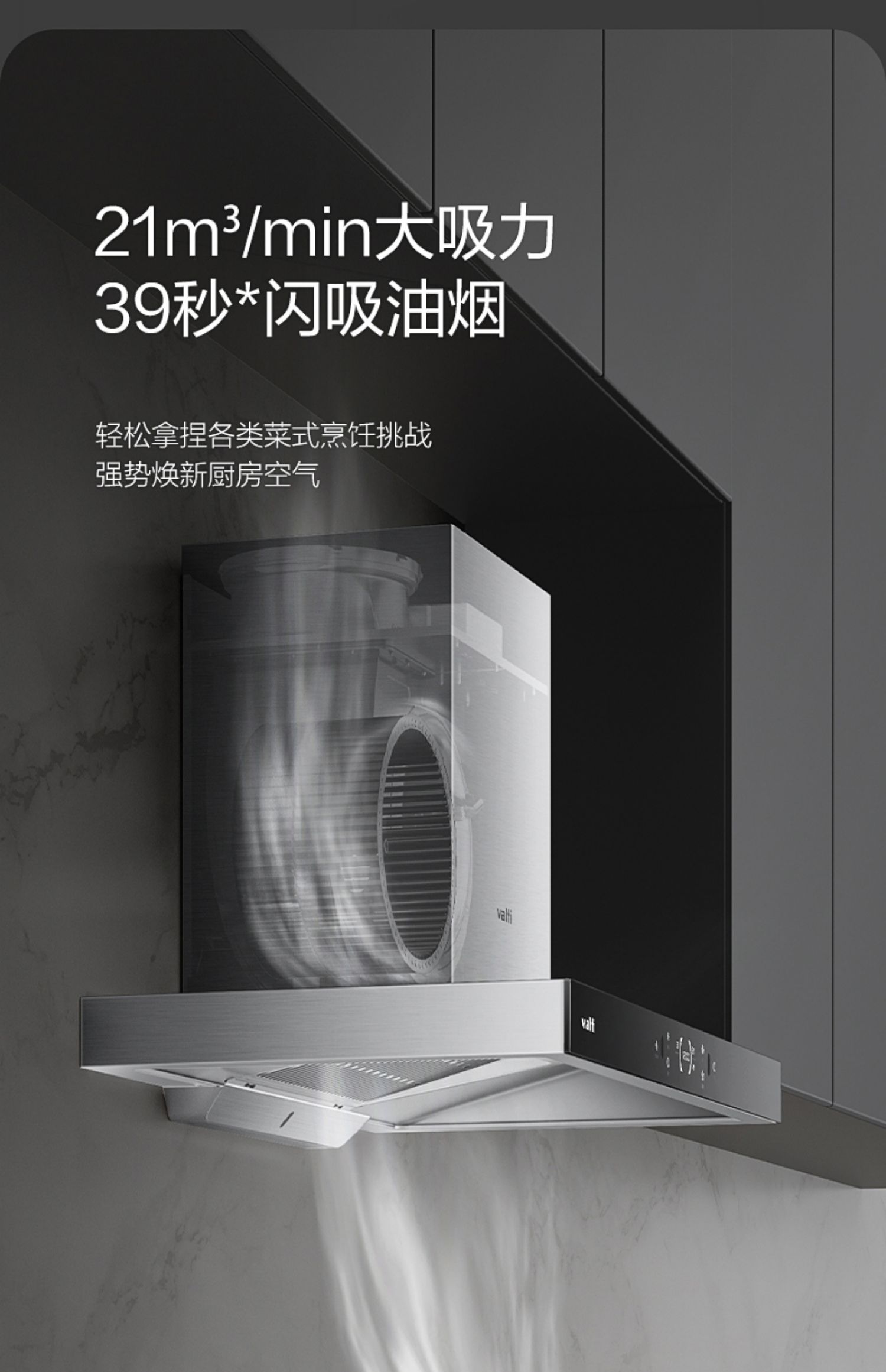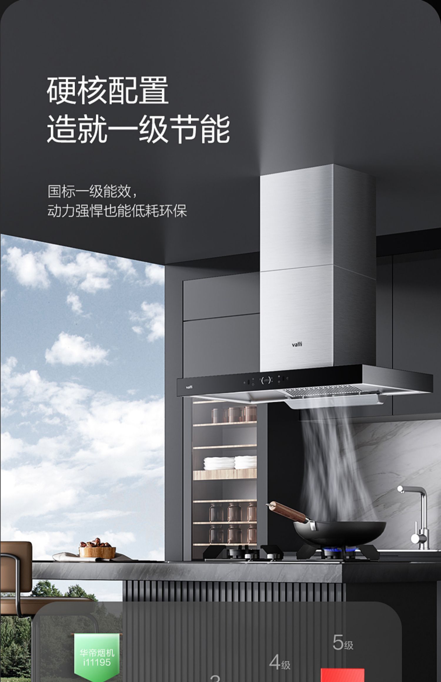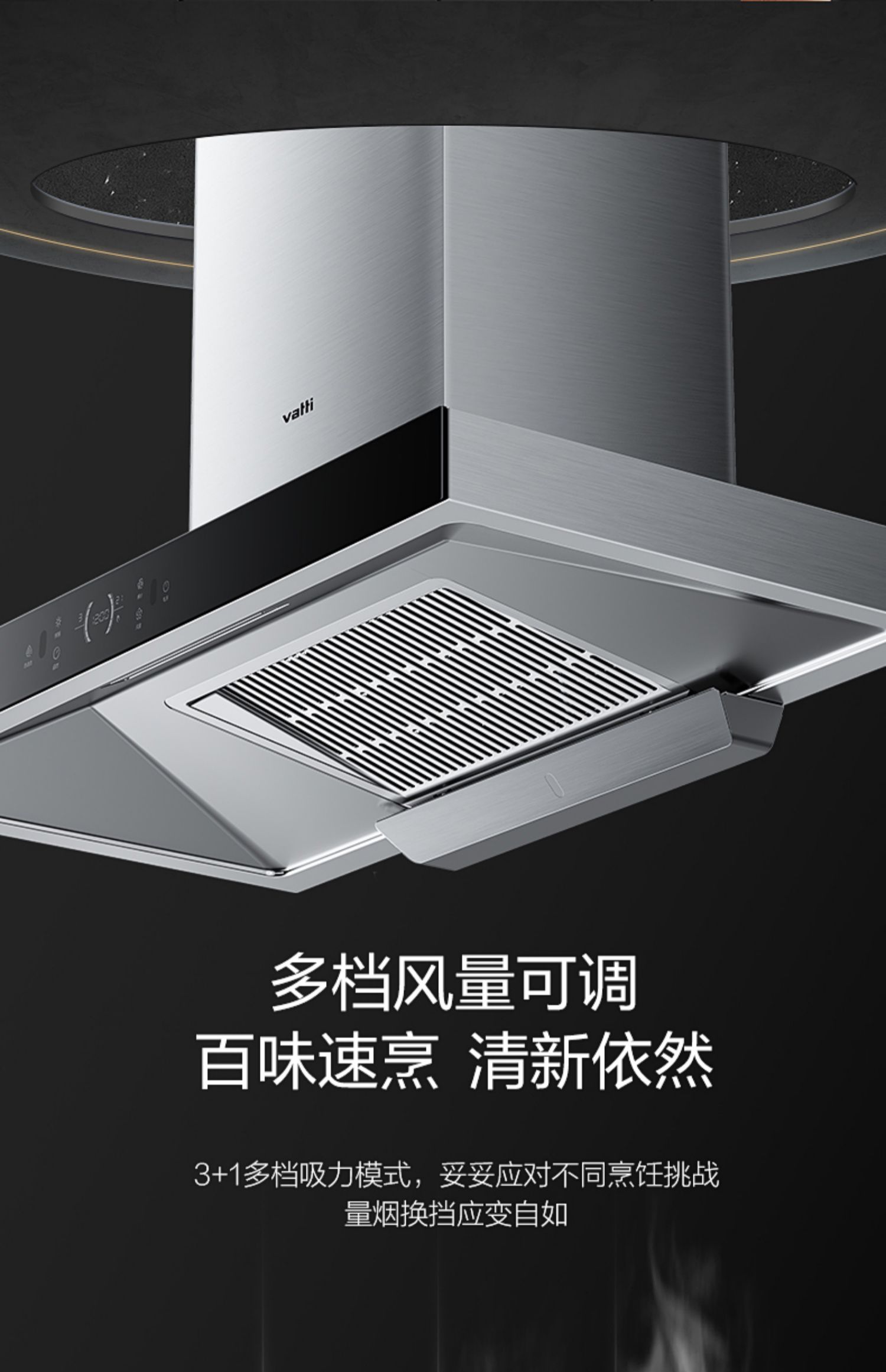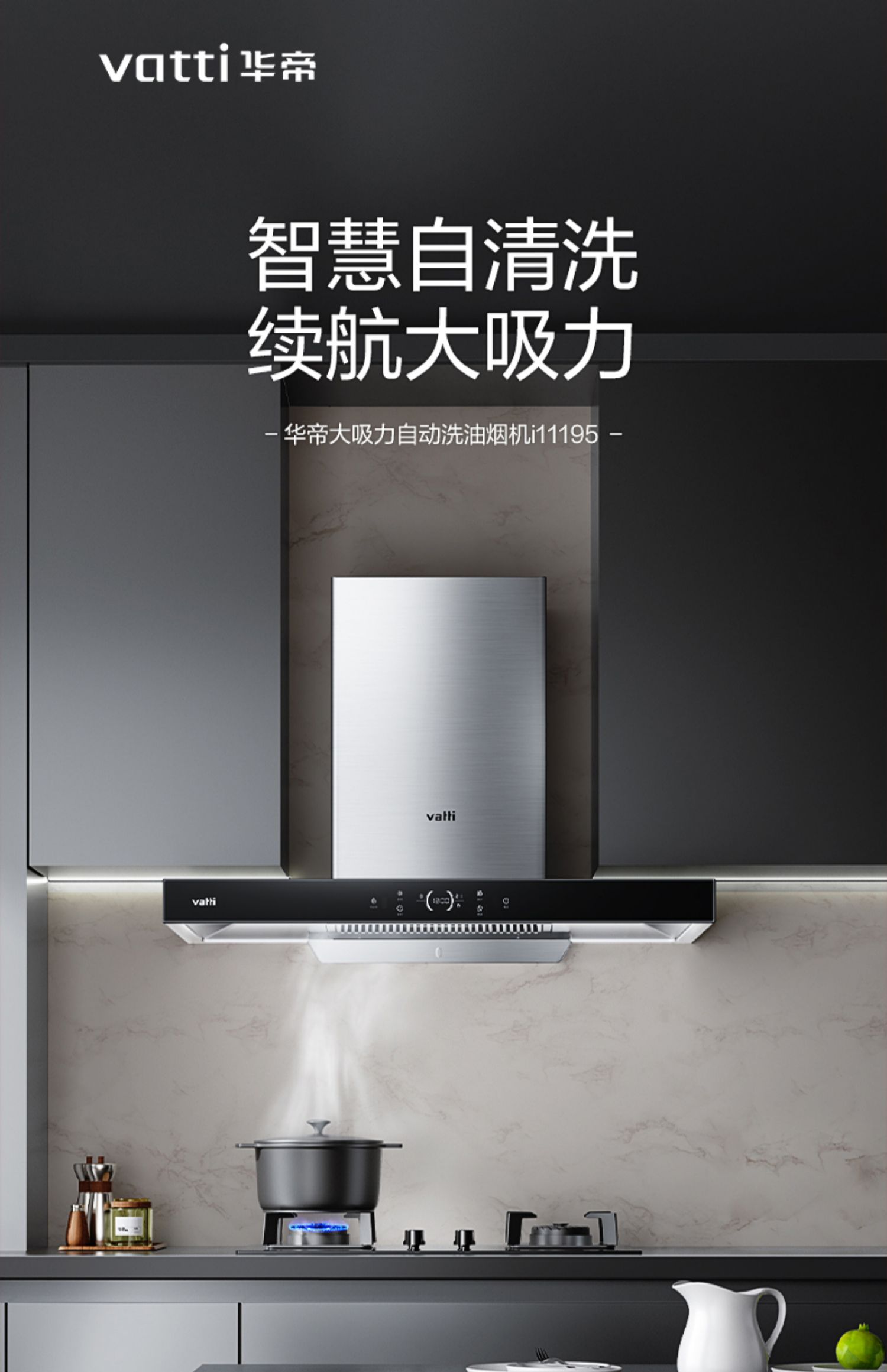 华帝(VATTI)油烟机 欧式顶吸抽油烟机家用 21立方大吸力自动清洗 挥手即开i11195单位:台 黑色