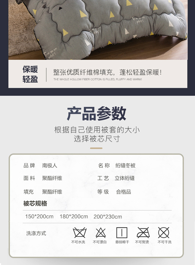 南极人 NJDB120 梦莎拉蒂 纤维冬被 200*230cm 5斤 灰色