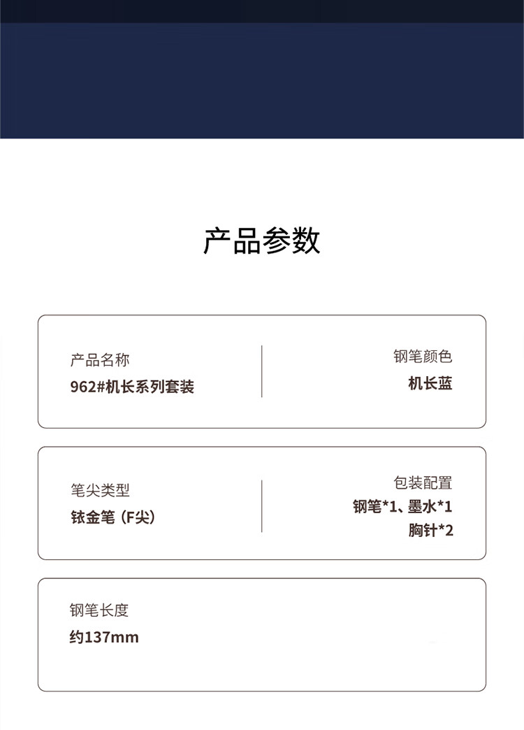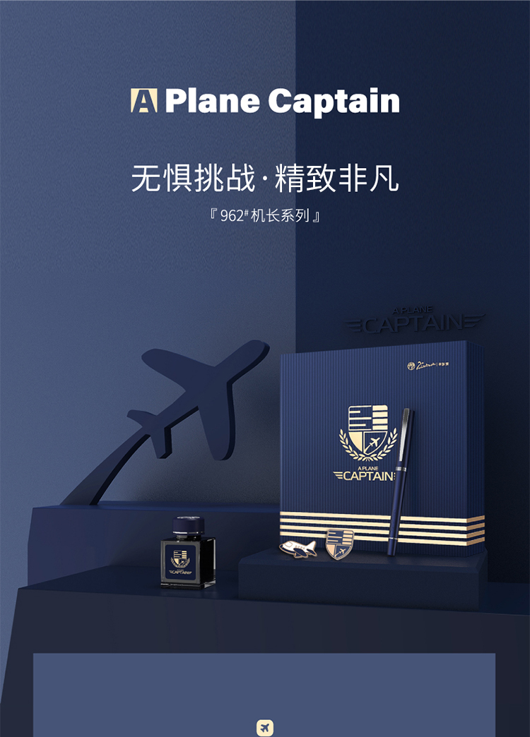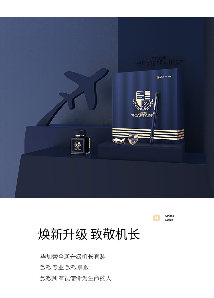 毕加索(pimio) 机长系列 钢笔*1+墨水*1+胸针*2 机长系列钢笔礼盒 蓝色(单位:套)