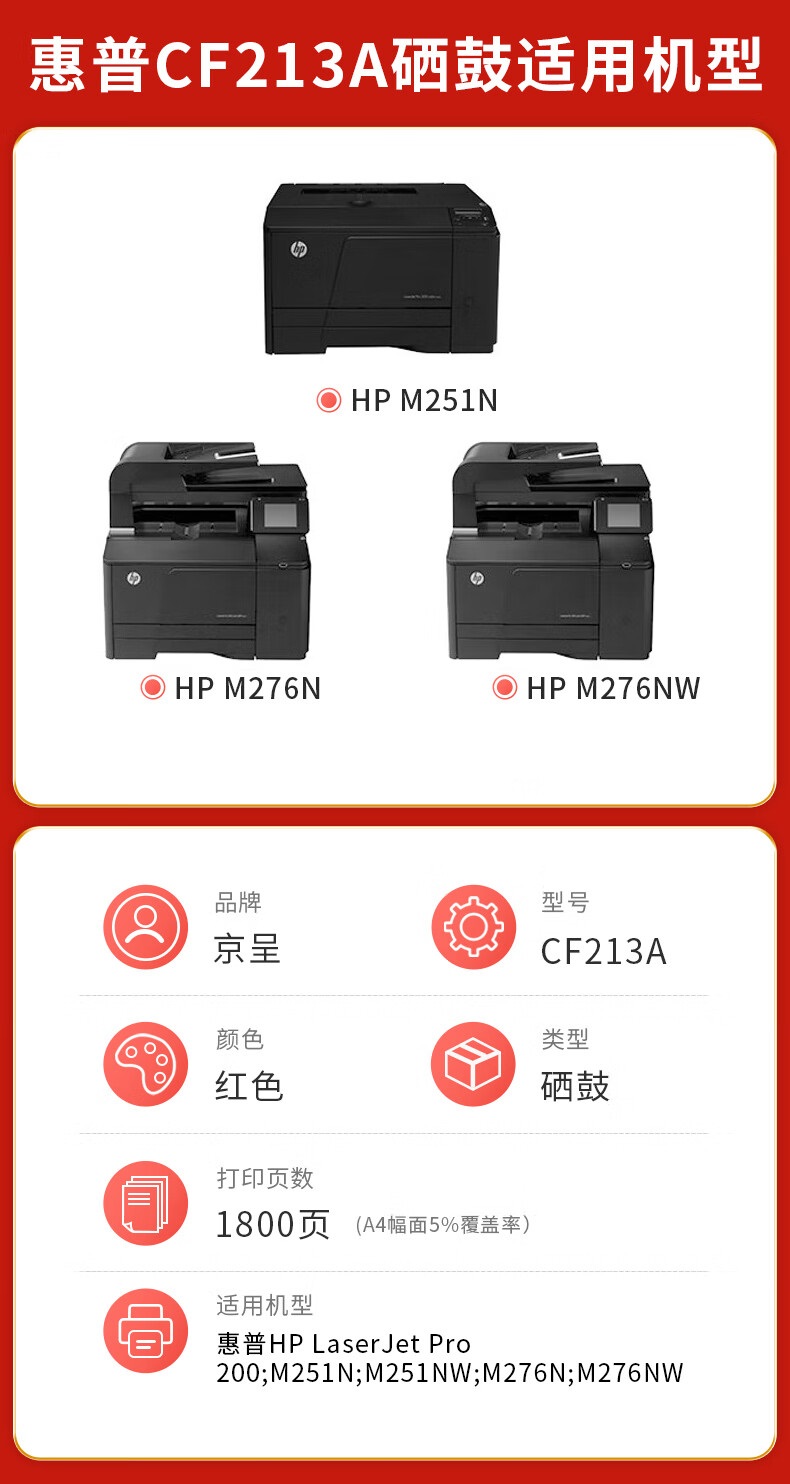 京呈PLUS硒鼓 m276nw/n CF213A 红色易加粉硒鼓 红色