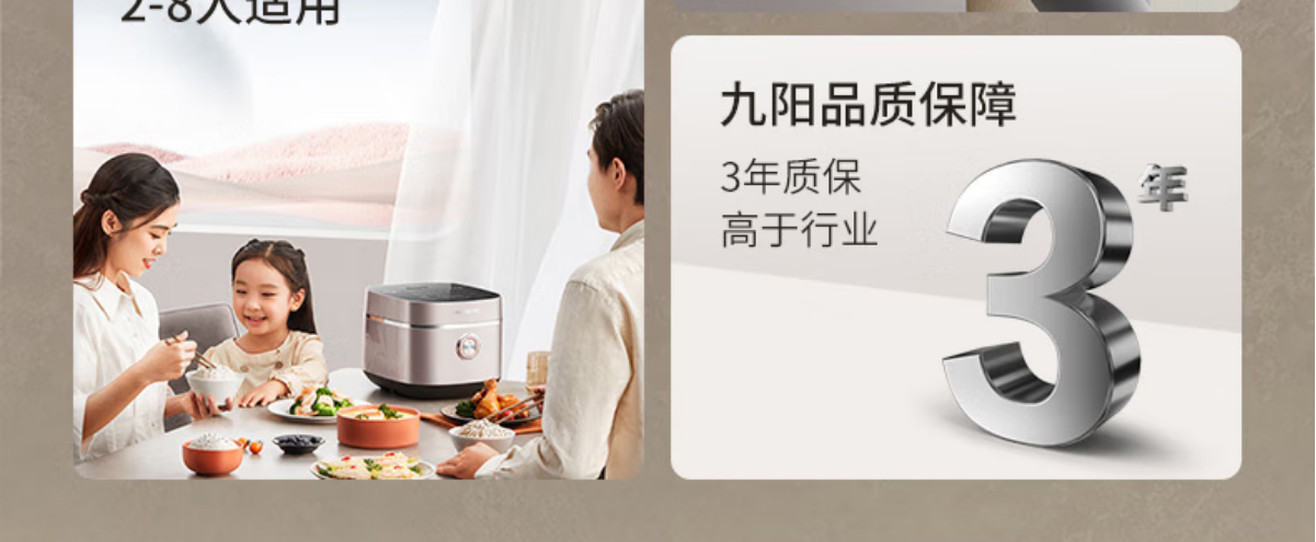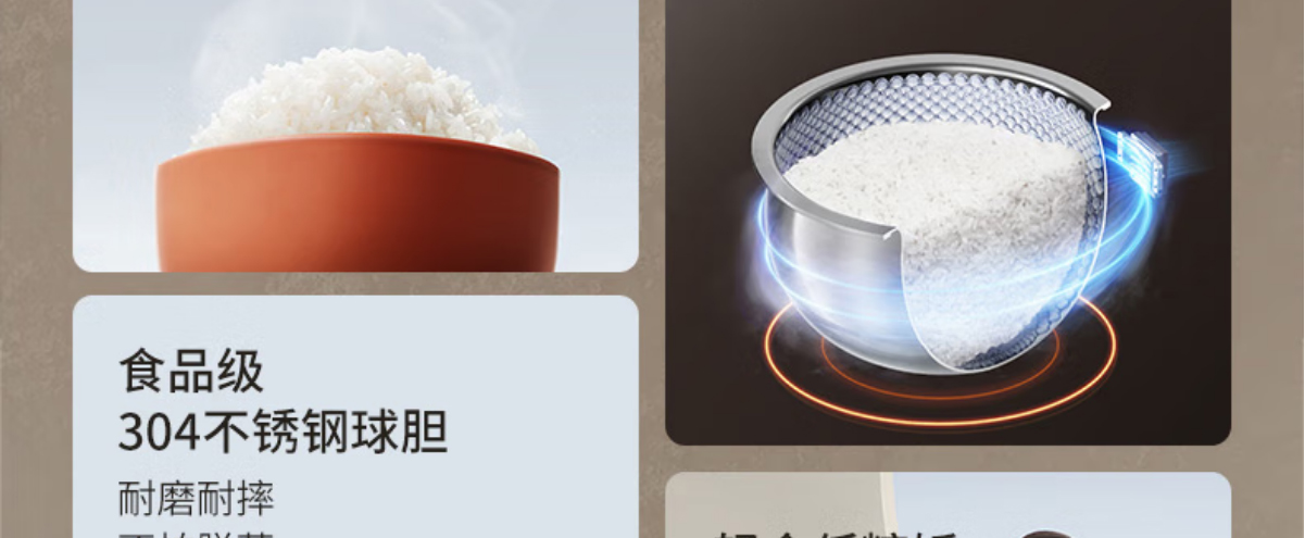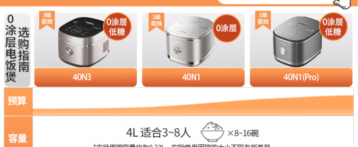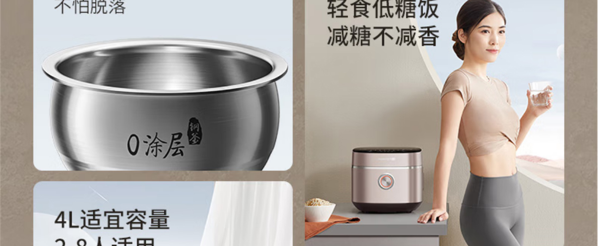 九阳(Joyoung)电饭煲家用电饭锅低糖0涂层不锈钢内胆4L大容量多功能预约蒸煮饭 40N3 台