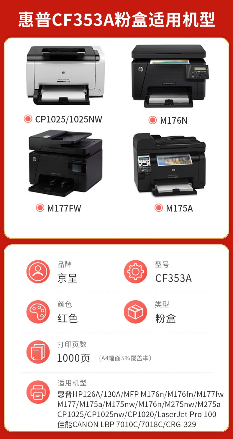 京呈PLUS CF350A红色粉盒 惠普cp1025 m175a m176n m177fw m175 红色