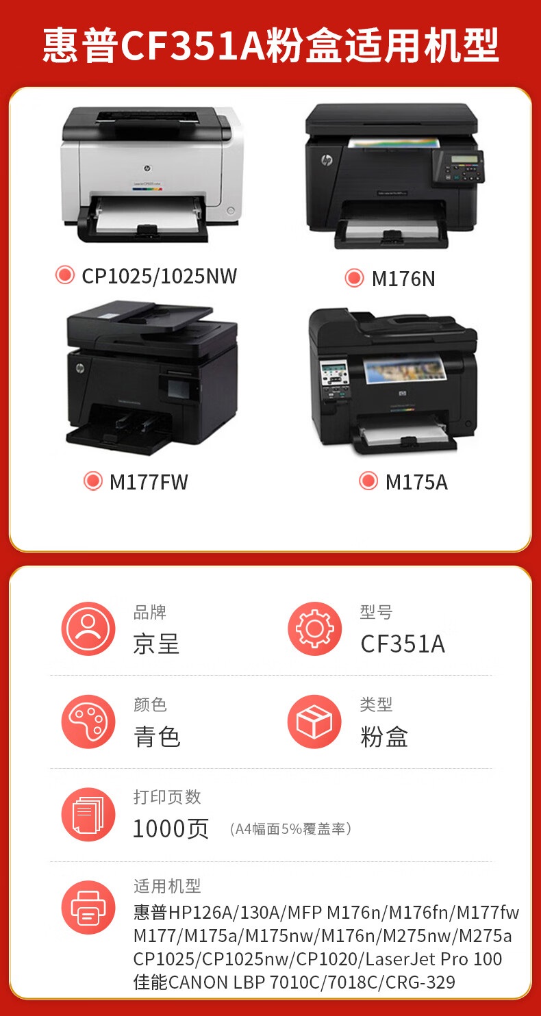 京呈PLUS CF350A青色粉盒 惠普cp1025 m175a m176n m177fw m175 蓝色