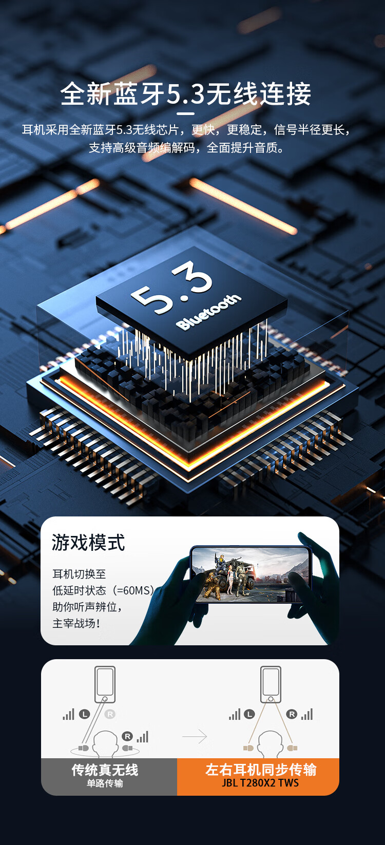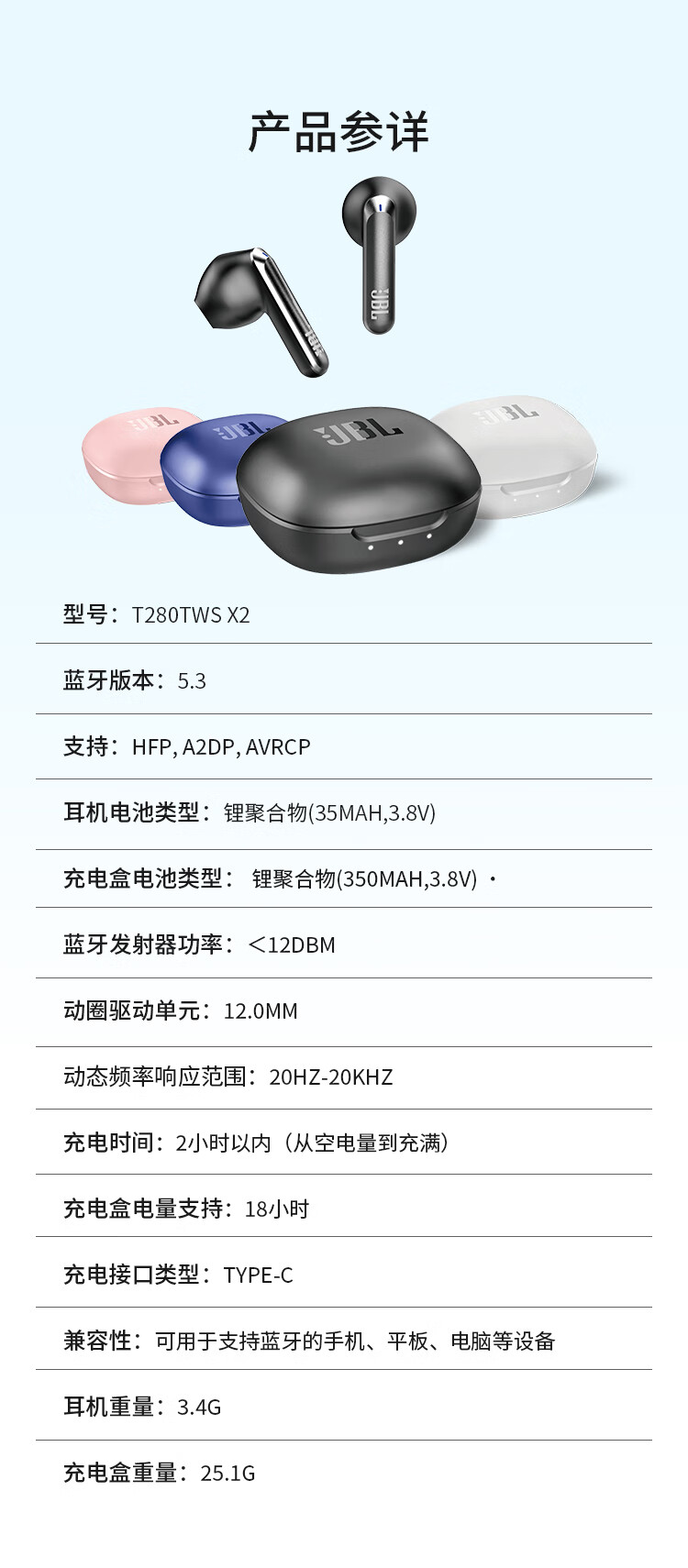 JBL T280TWS X2 真无线蓝牙耳机单位:个 黑色