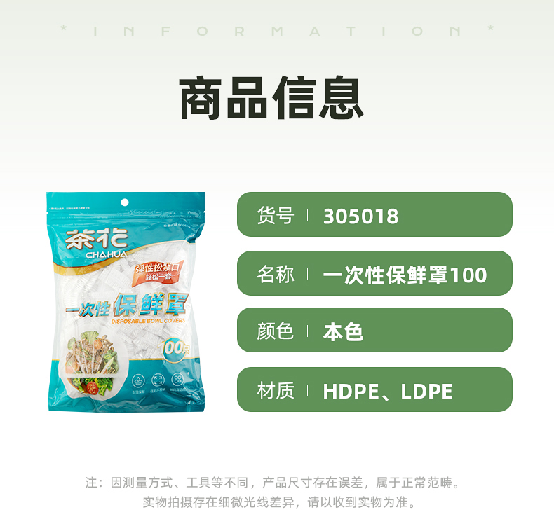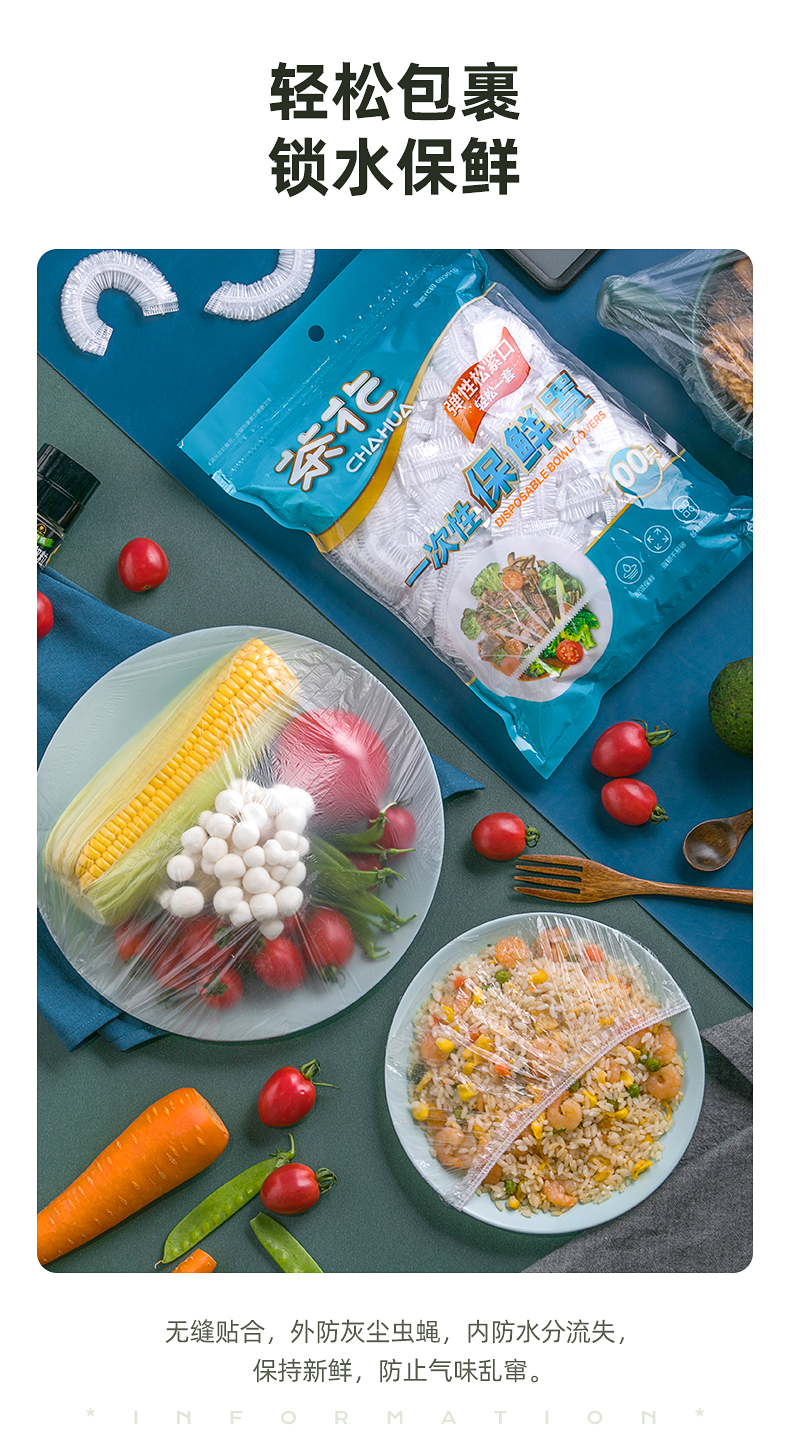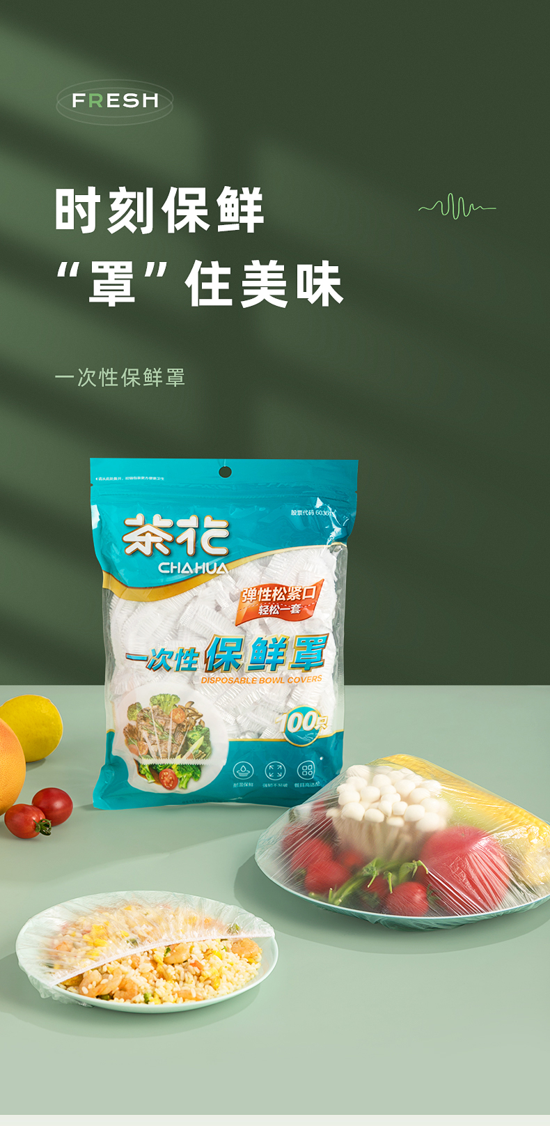 茶花(CHAHUA) 松紧口通用食品级 100只 PE材质,锁水保鲜 白色(单位:包)