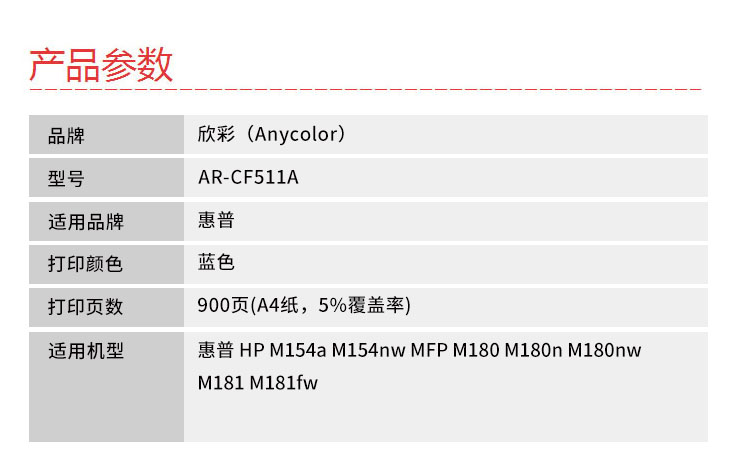 欣彩(Anycolor) AR-CF511A专业版 打印量900页 粉盒 (计价单位:支) 青色 青色