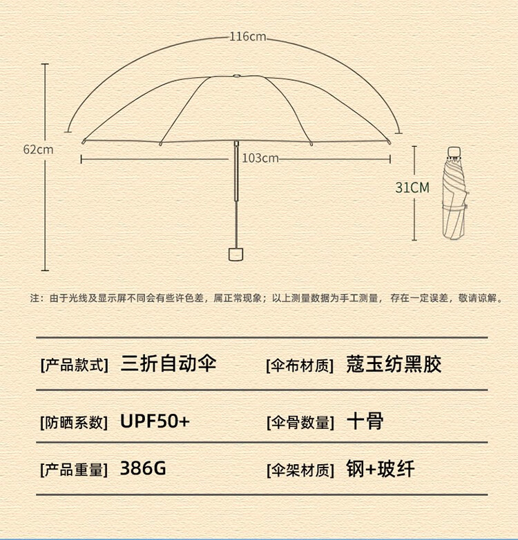 天堂【31171E风雅】全自动三折伞10骨-/把 甘酪白