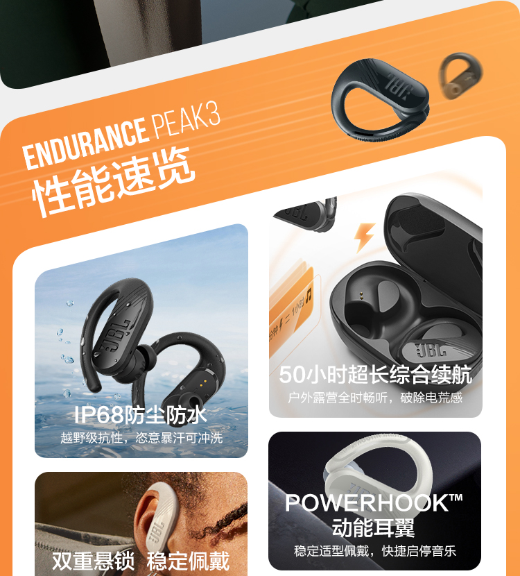 JBL Endurance Peak3 真无线蓝牙耳机 黑色