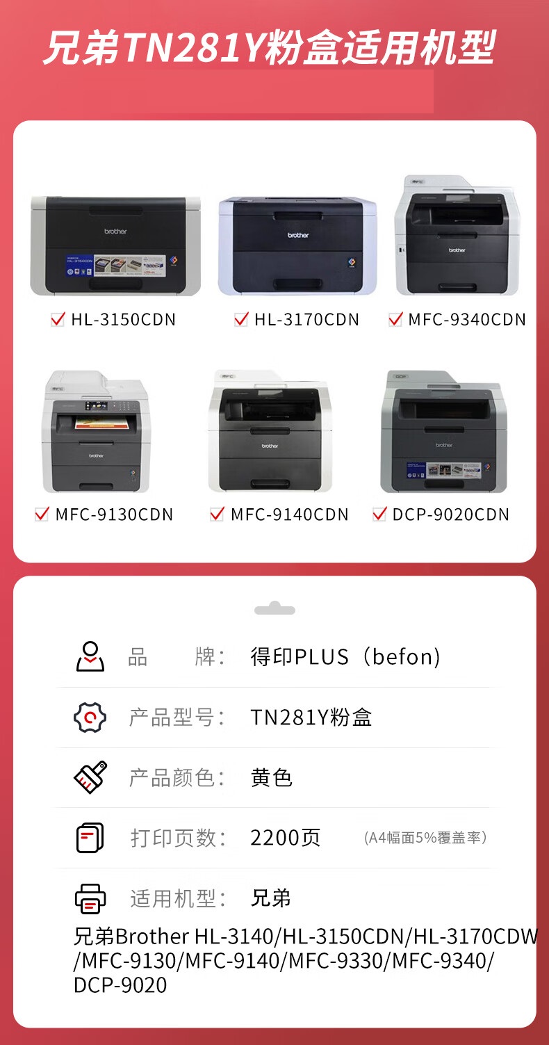 得印PLUS TN281Y黄色粉盒 兄弟TN285/HL3140/3150CDN/单位:支 黄色