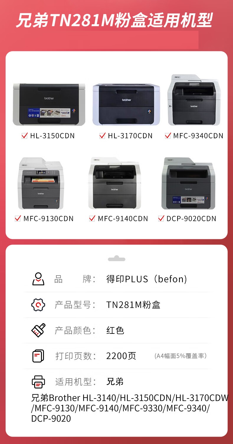 得印PLUS TN281M红色粉盒 兄弟TN285/HL3140/3150CDN/单位:支 红色
