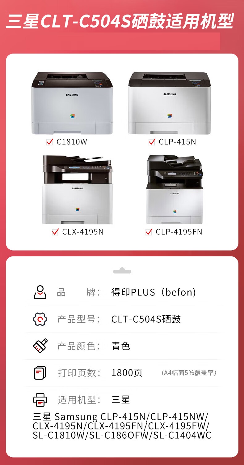 得印PLUS CLT-C504S蓝色粉盒 C1810W/C1860FW/CLP-475 单位:支 蓝色