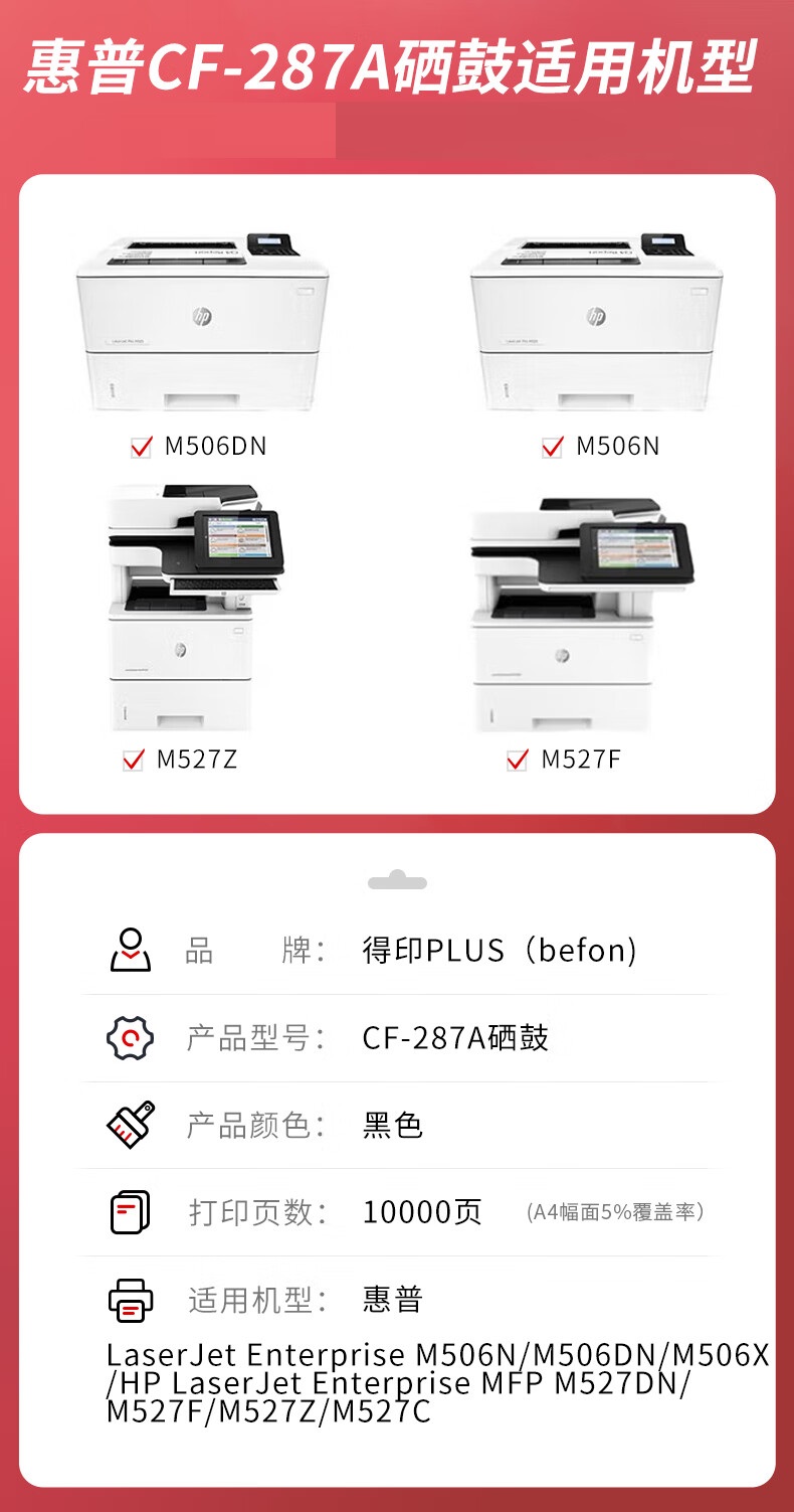 得印PLUS CF287A黑色硒鼓 惠普HPM527/M506x/dn 501/M527dn单位:支 黑色