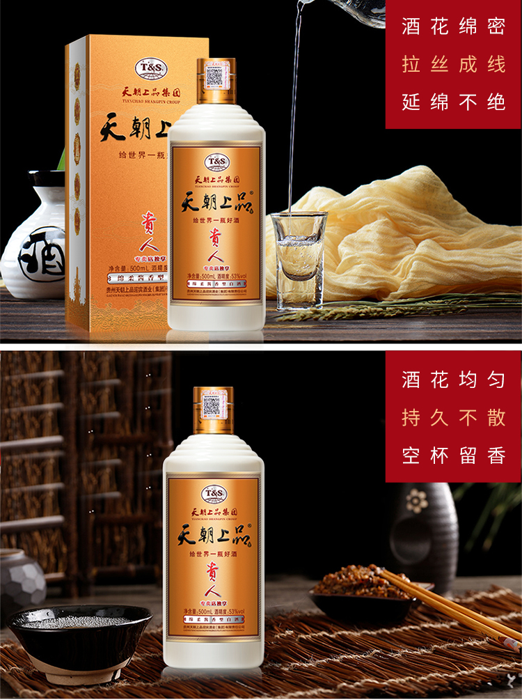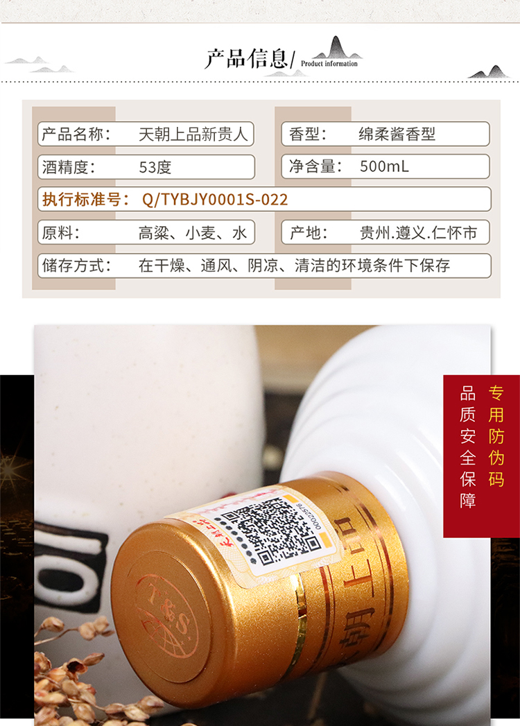 天朝上品 贵人 绵柔酱香型53度 白酒 500ml*6瓶/箱 棕黄色(单位:箱)