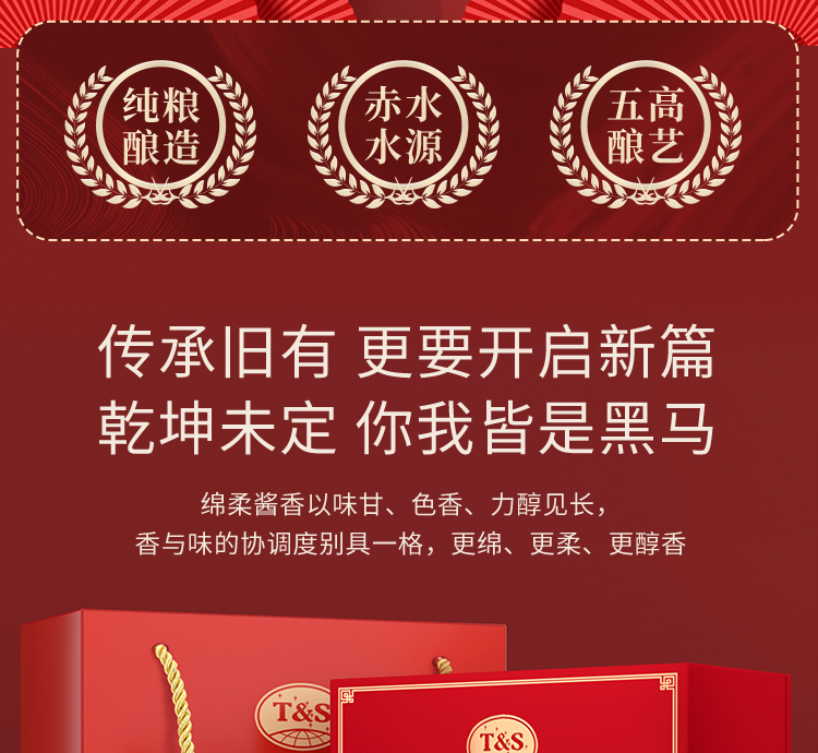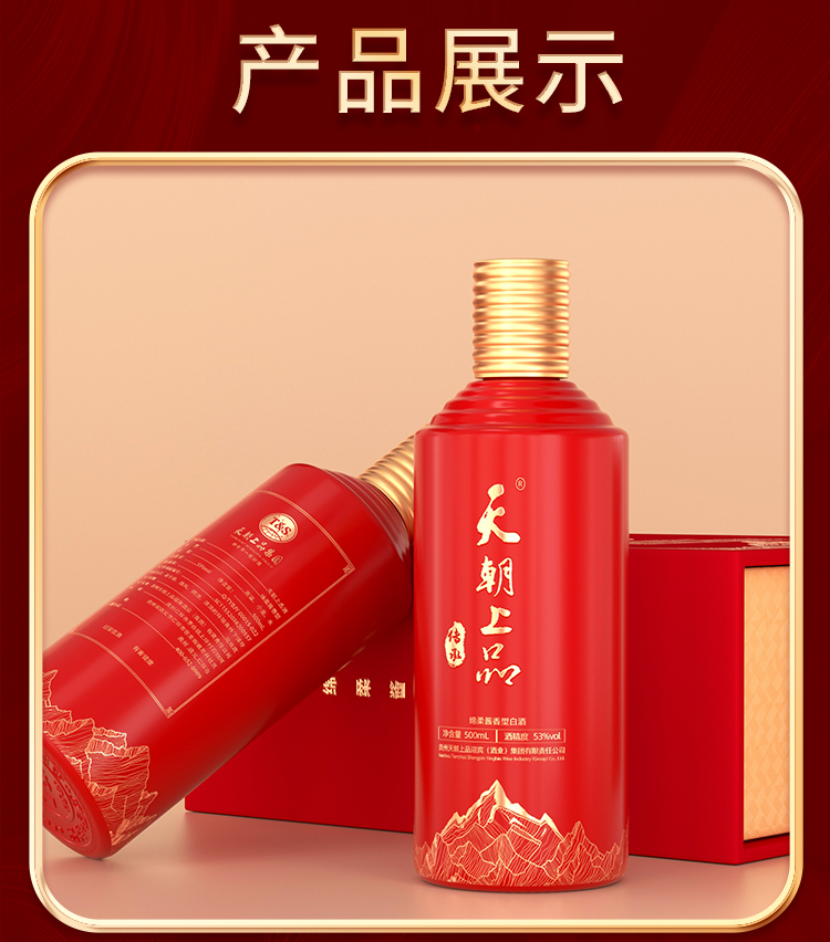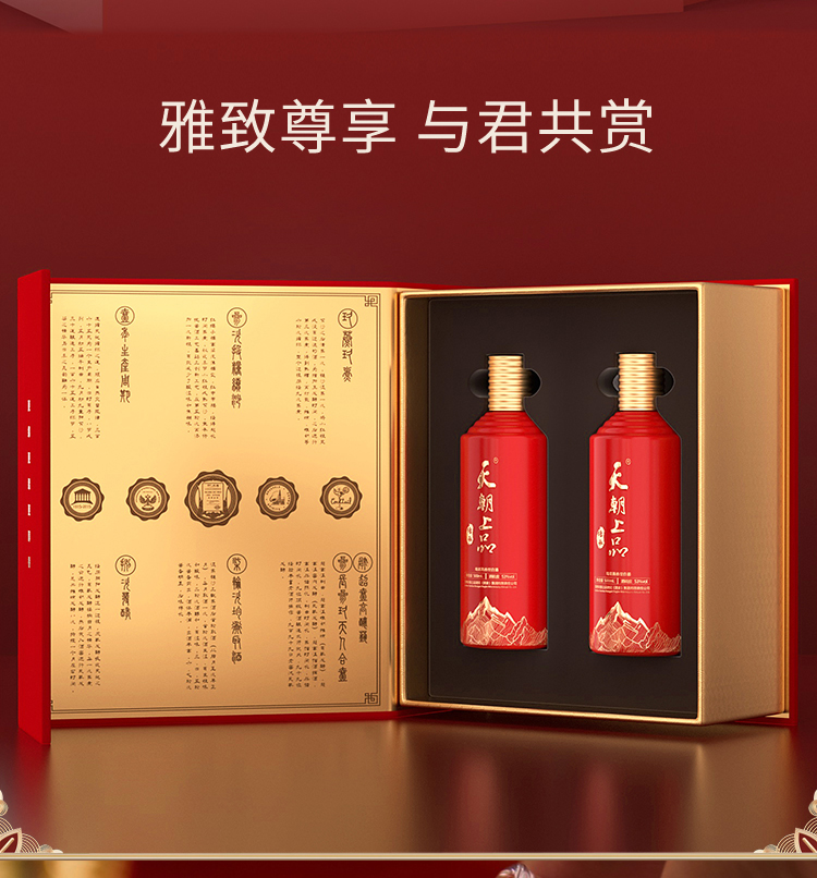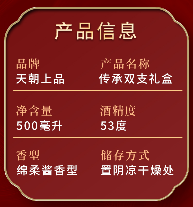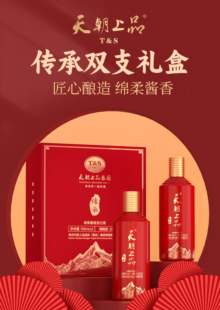 天朝上品 传承礼盒 绵柔酱香型53度 白酒 500ml*2瓶/盒 红色(单位:盒)