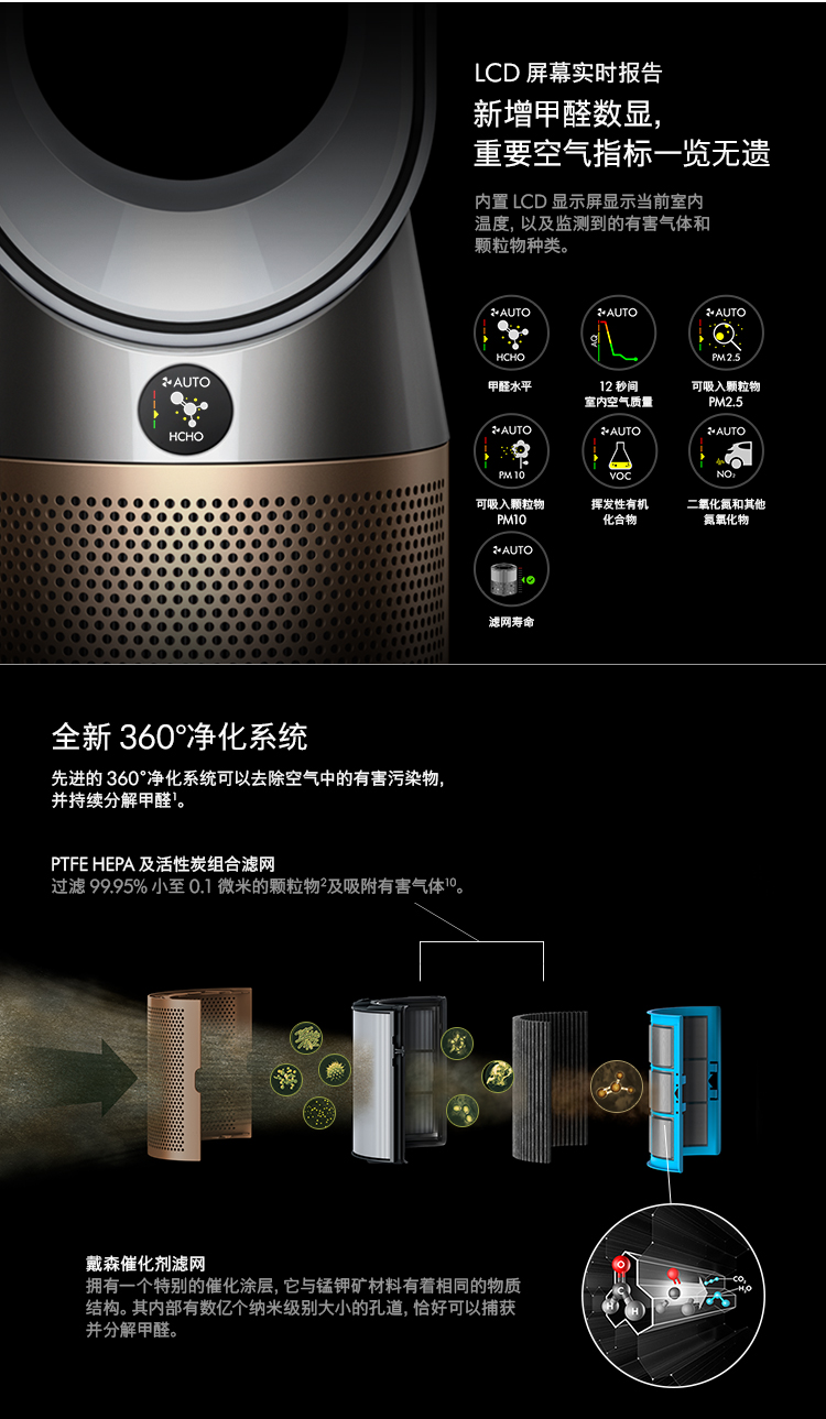 戴森 DYSON TP09黑金 除菌除甲醛空气净化风扇 整屋循环净化 兼具空气净化器功能台 黑色