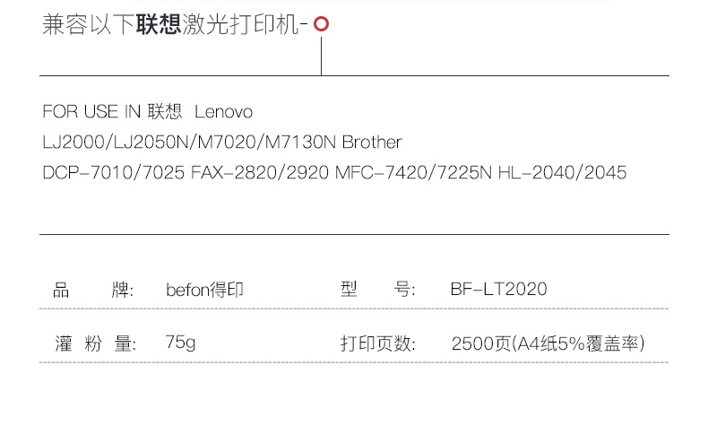 得印(befon) PLUS BF-LT2020/TN2050 墨粉盒 (计价单位:支) 黑色 黑色