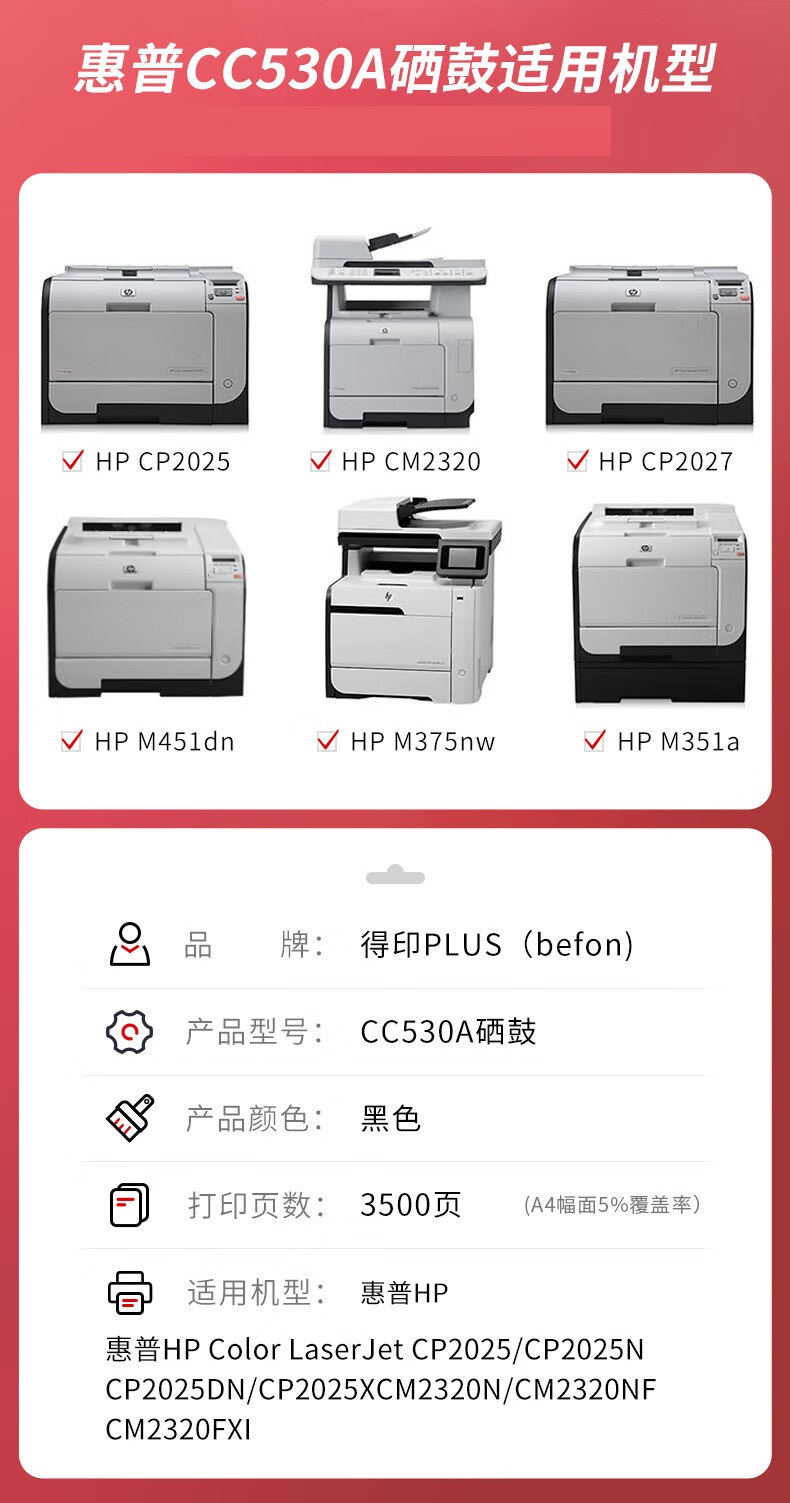 得印PLUS CC530A黑色硒鼓 惠普CE410A/CF380/CRG318 单位:支 黑色