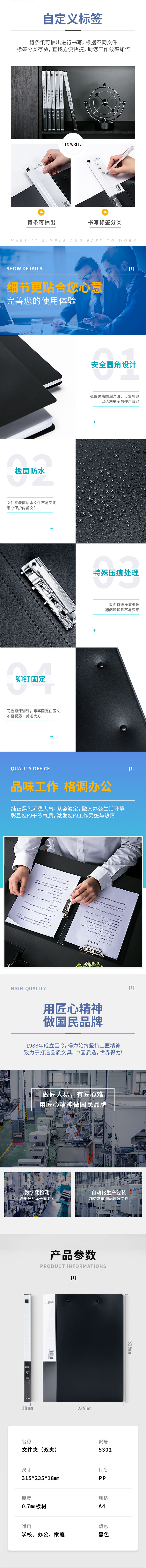 得力5302文件夹双夹(蓝)(5只装) 蓝色