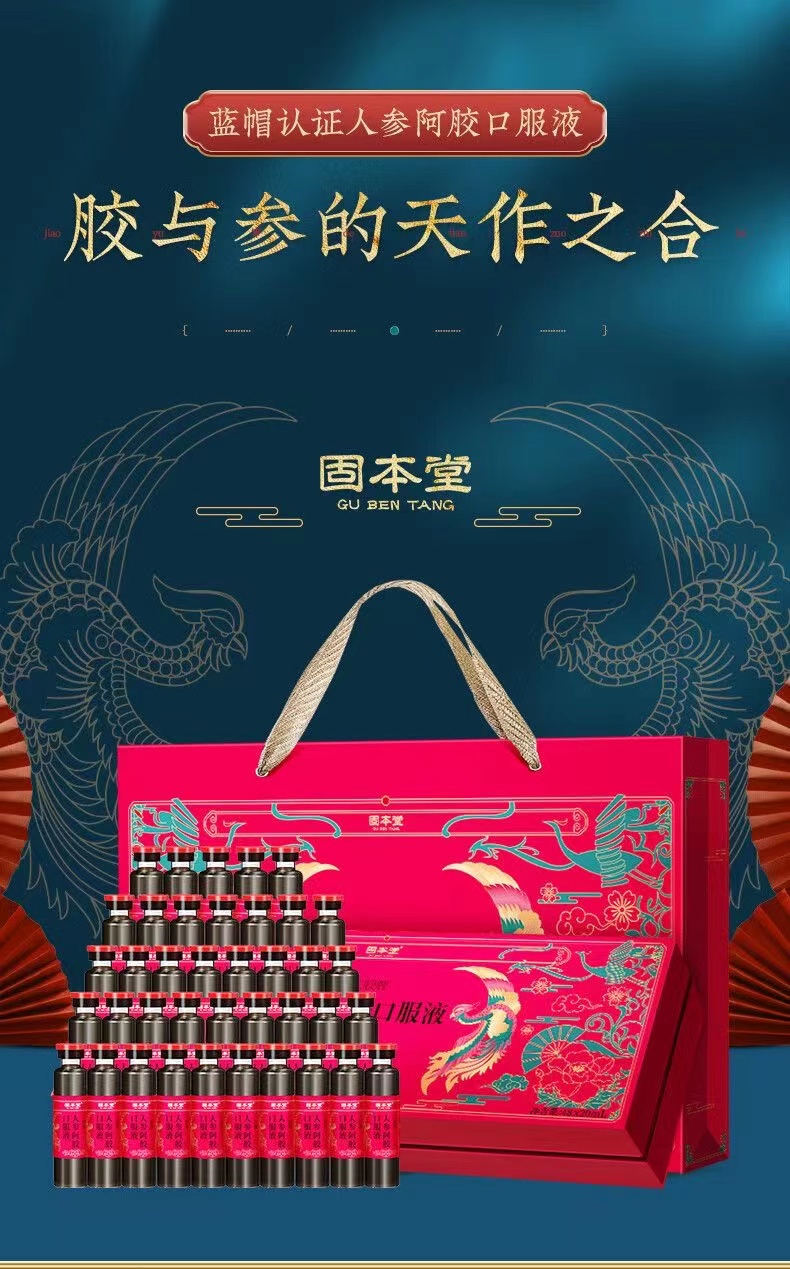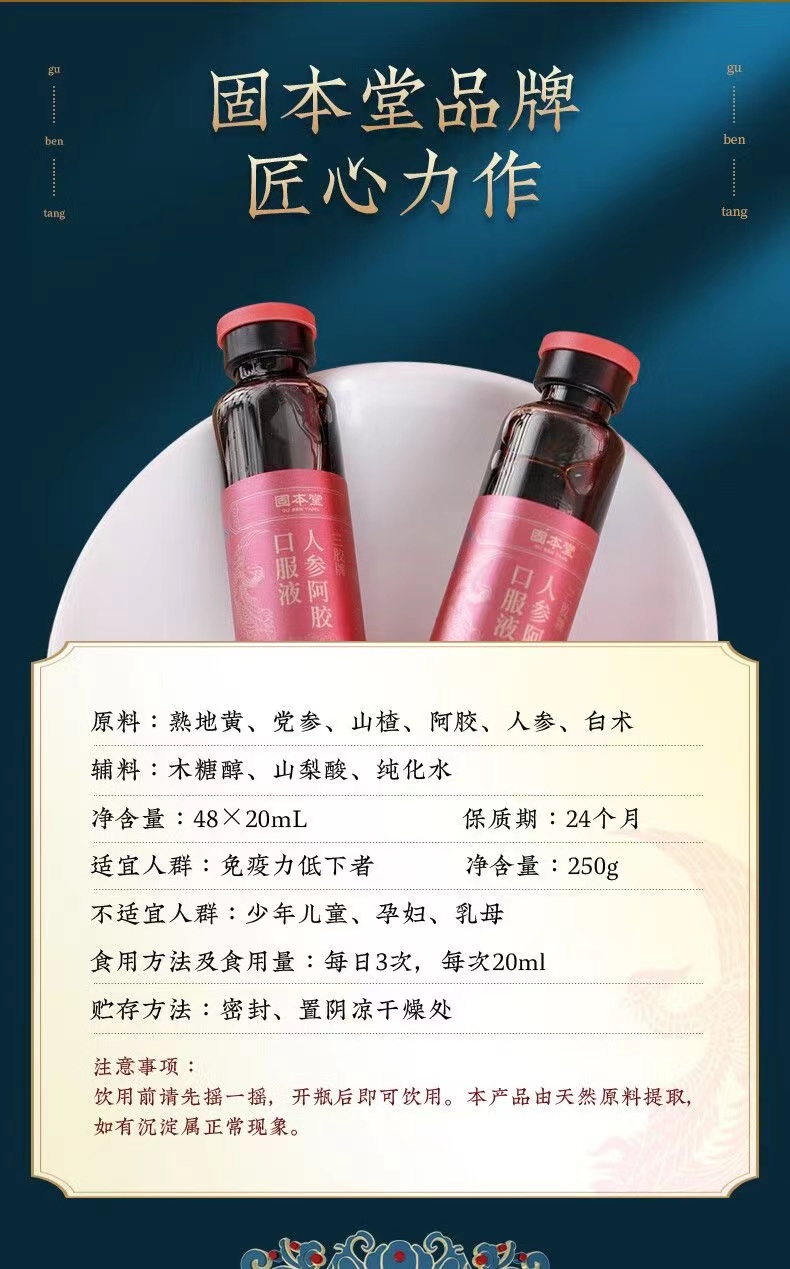 固本堂人参阿胶口服液20ml*48支礼盒装阿胶浆蓝帽(单位:盒) 夏日呢