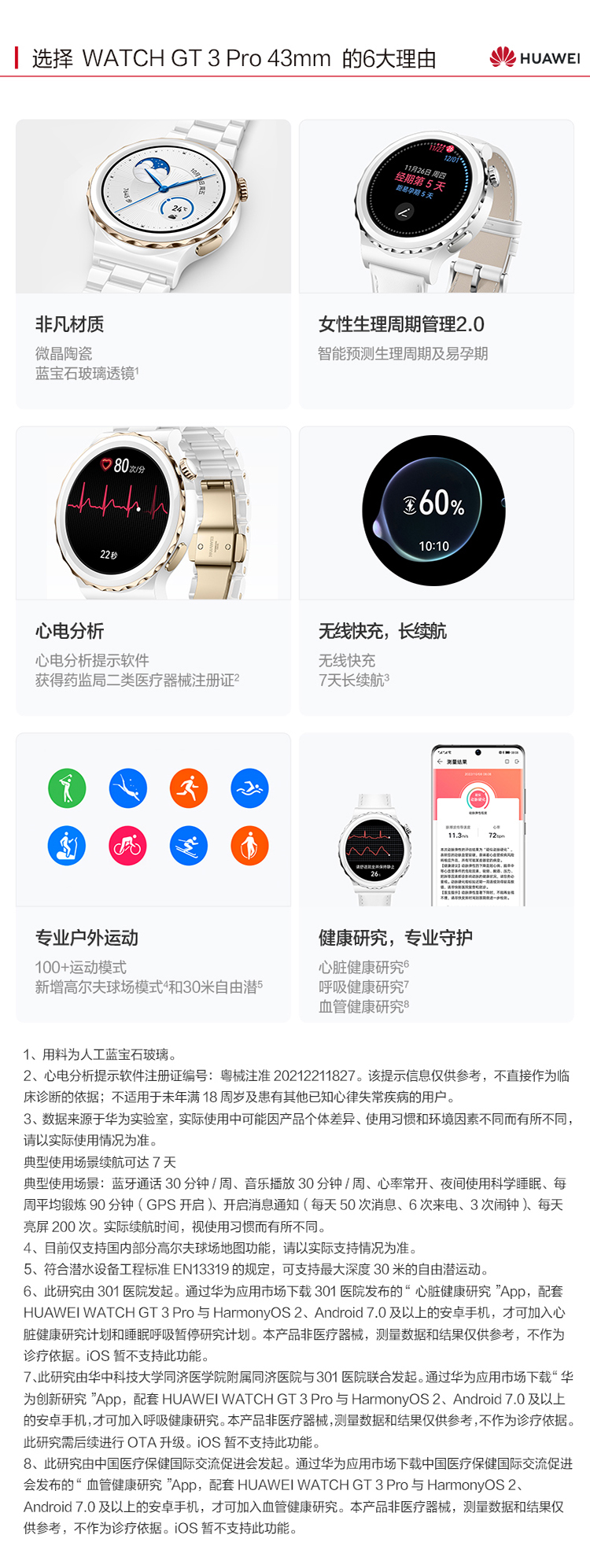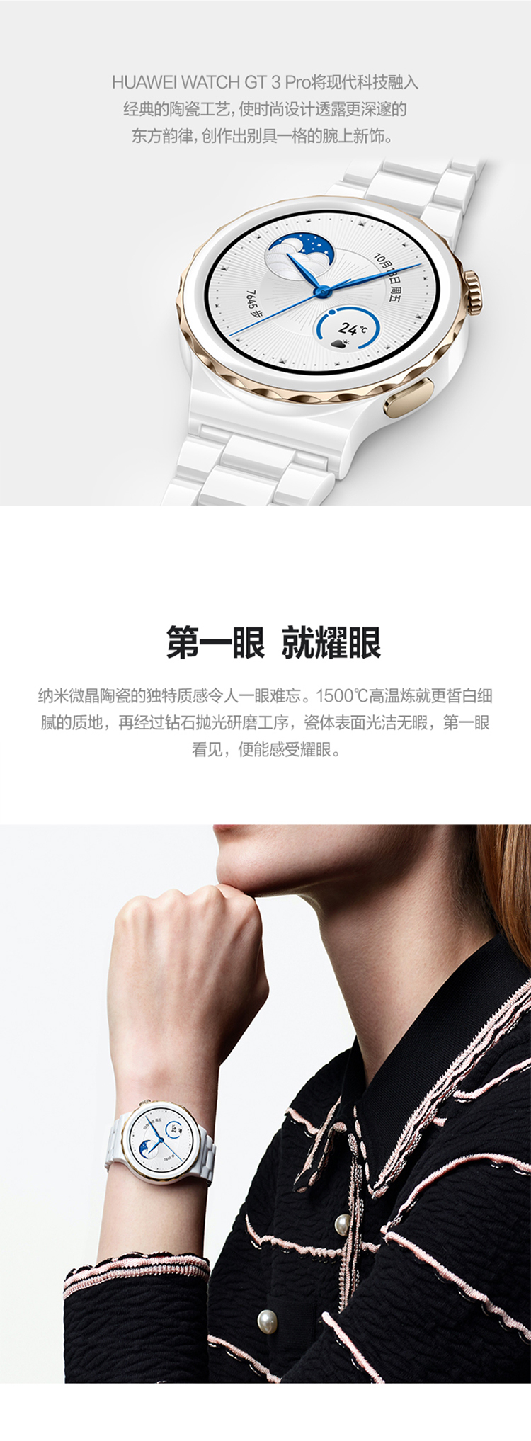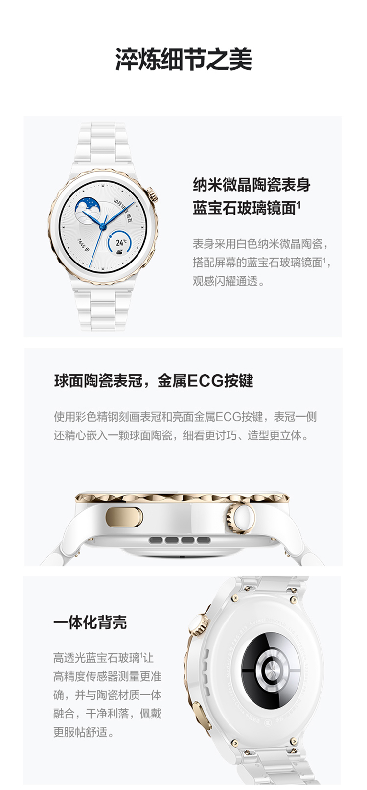 华为HUAWEI WATCH GT 3 Pro 42.9mm表盘 运动智能手表 腕上微信华为手表 白色陶瓷表带