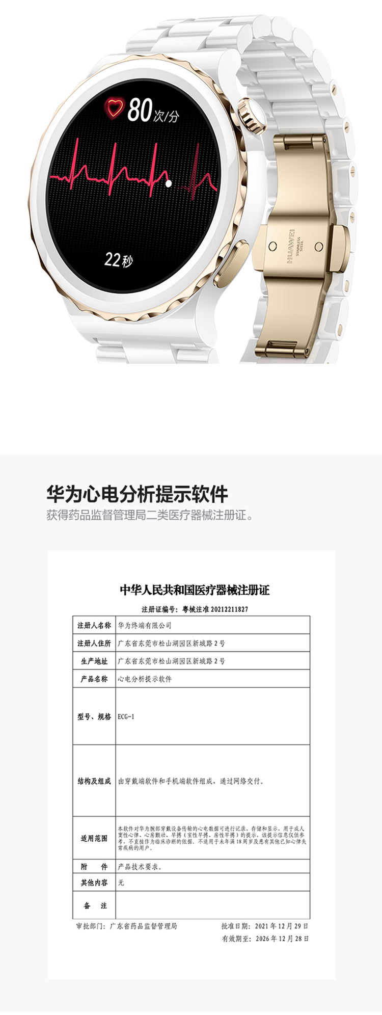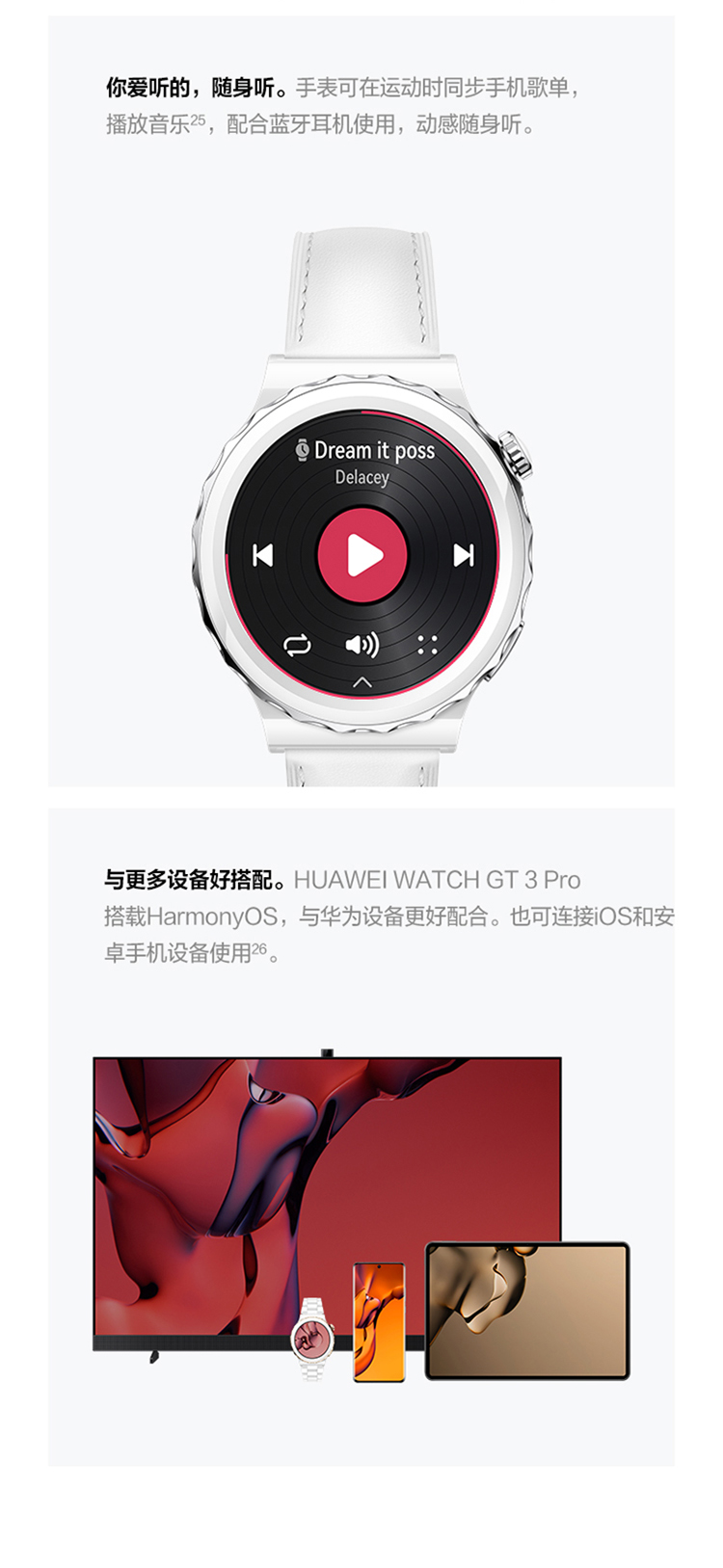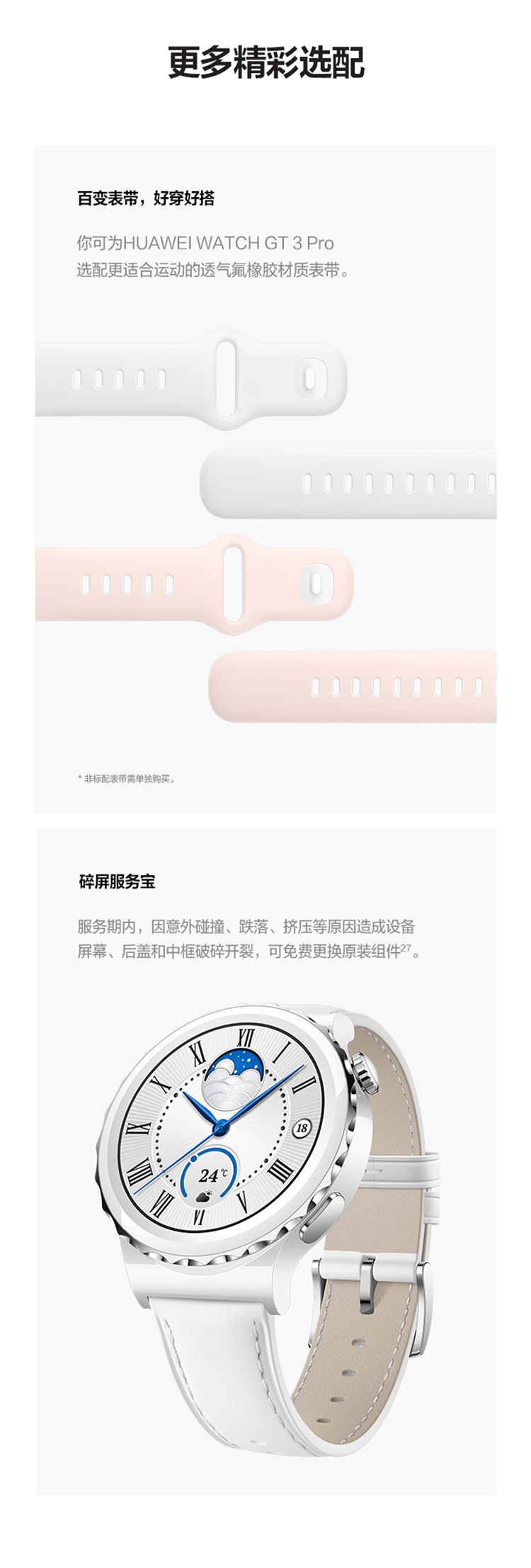 华为HUAWEI WATCH GT 3 Pro 42.9mm表盘 运动智能手表 腕上微信华为手表 白色陶瓷表带