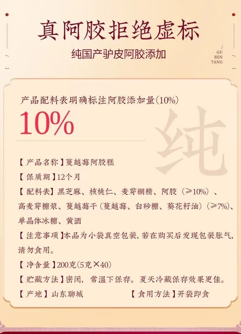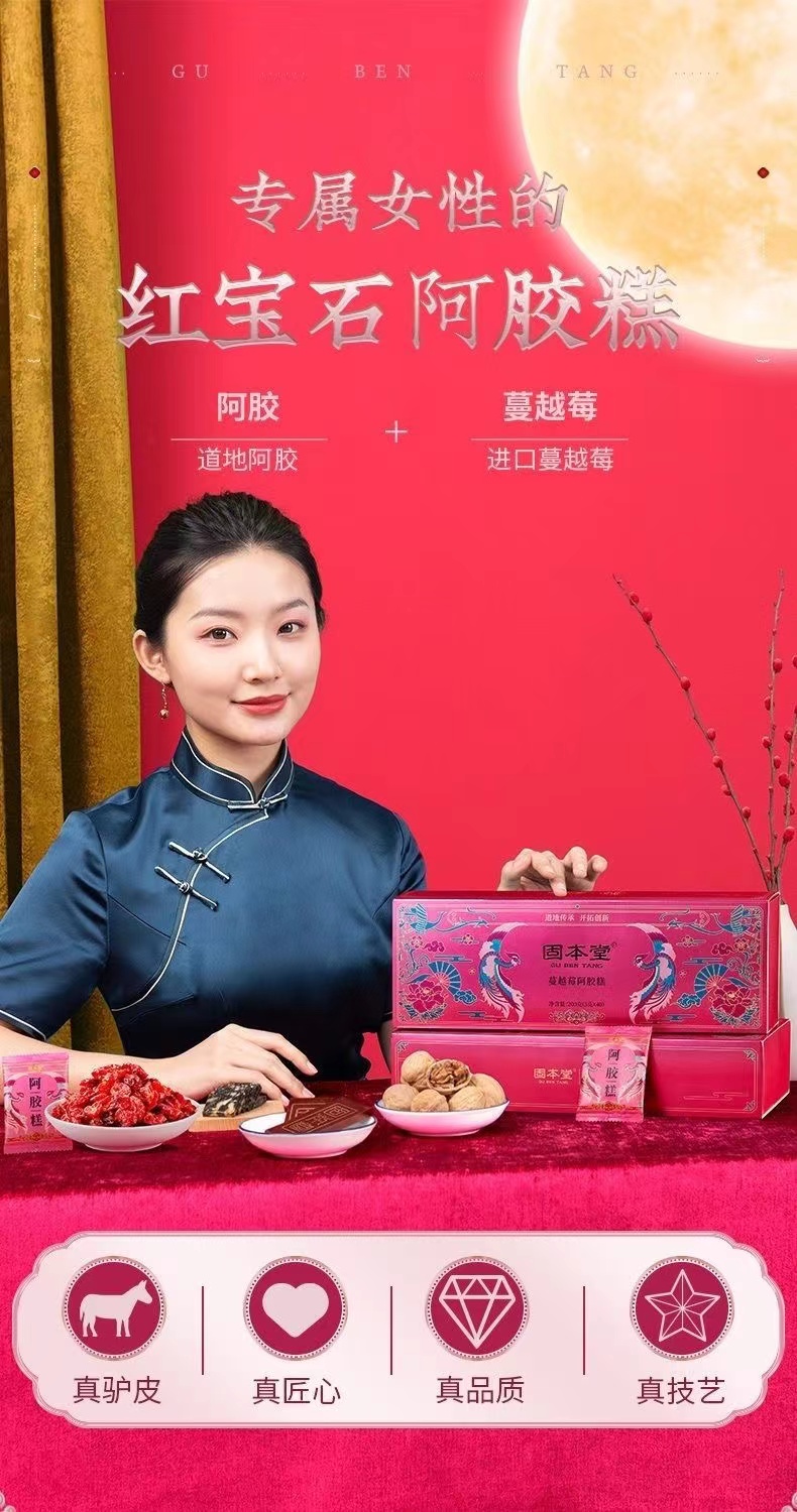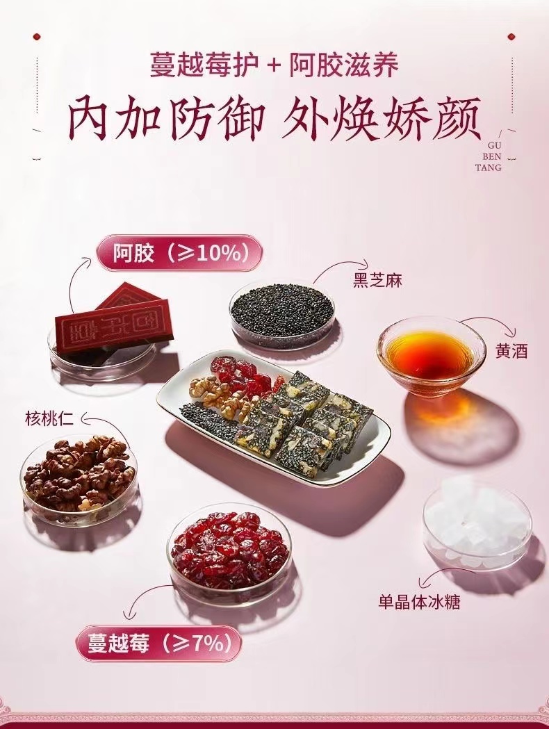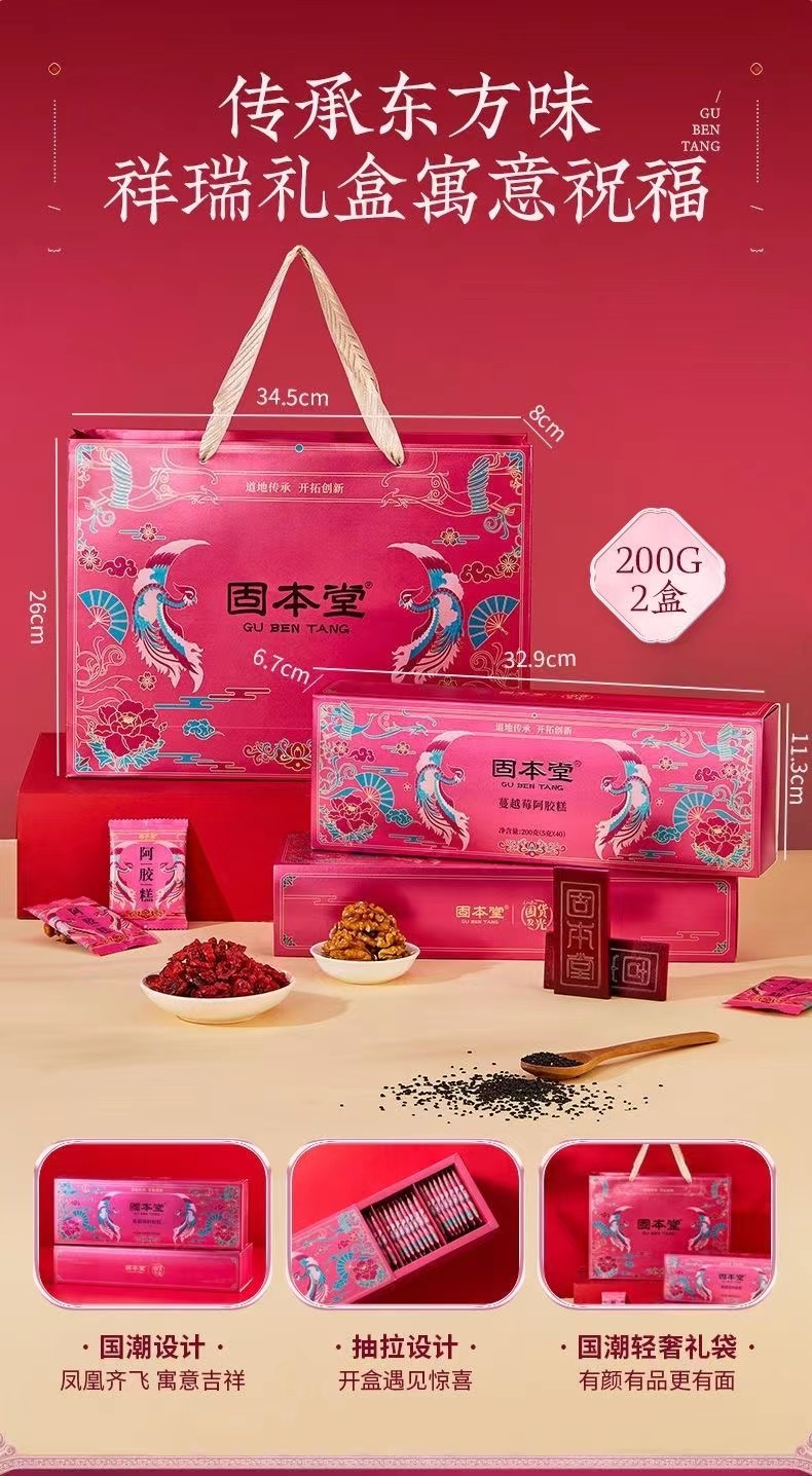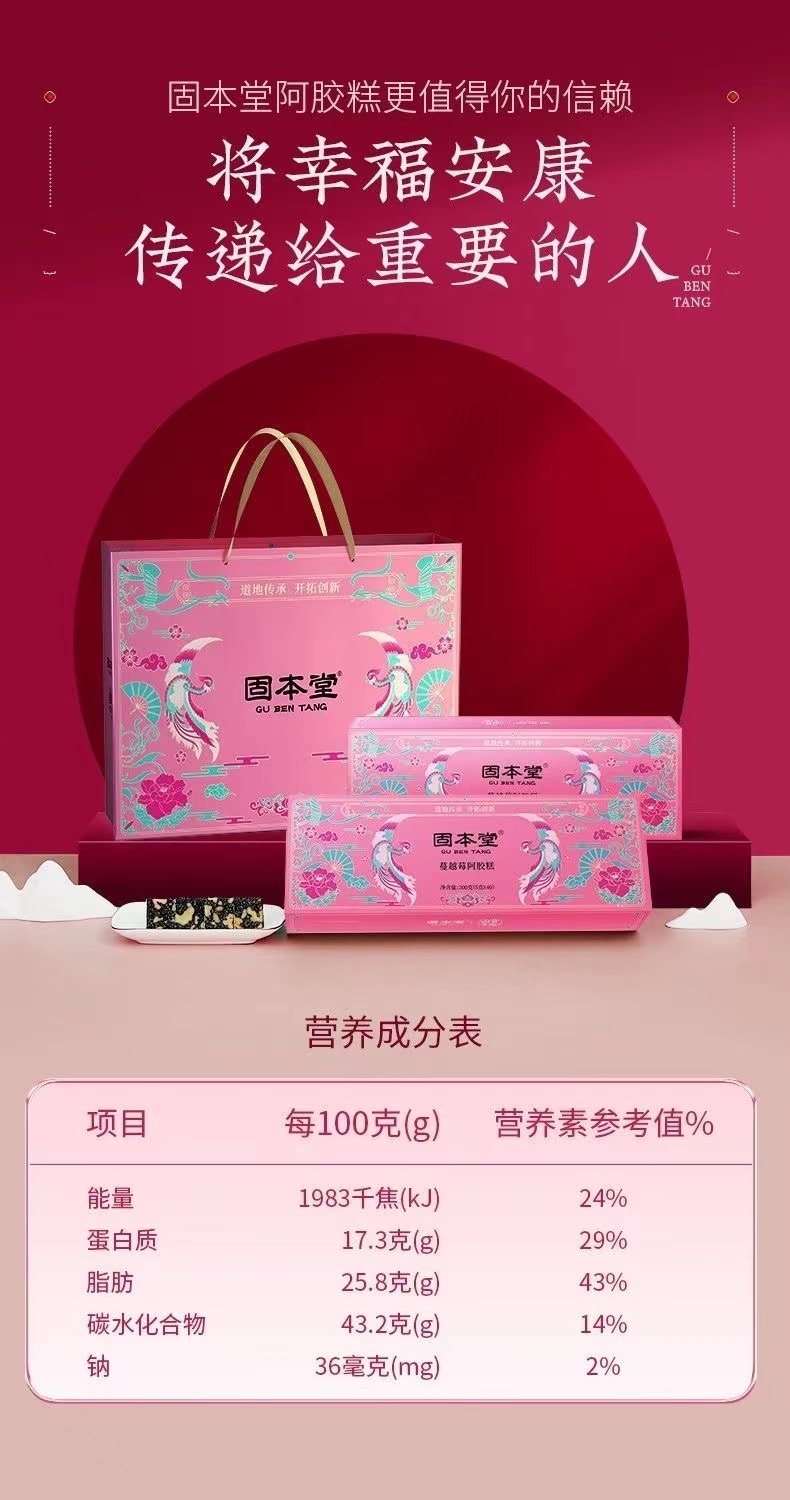 固本堂阿胶糕礼盒400g(80块)蔓越莓口味营养品(单位:盒) 佳人粉