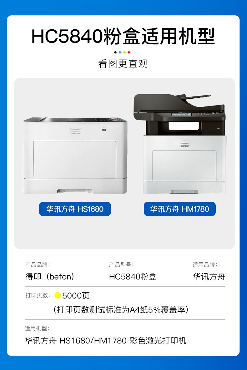得印 HC5840黄色粉盒 适用华讯方舟HS1680 HM1780 单位:支 黄色