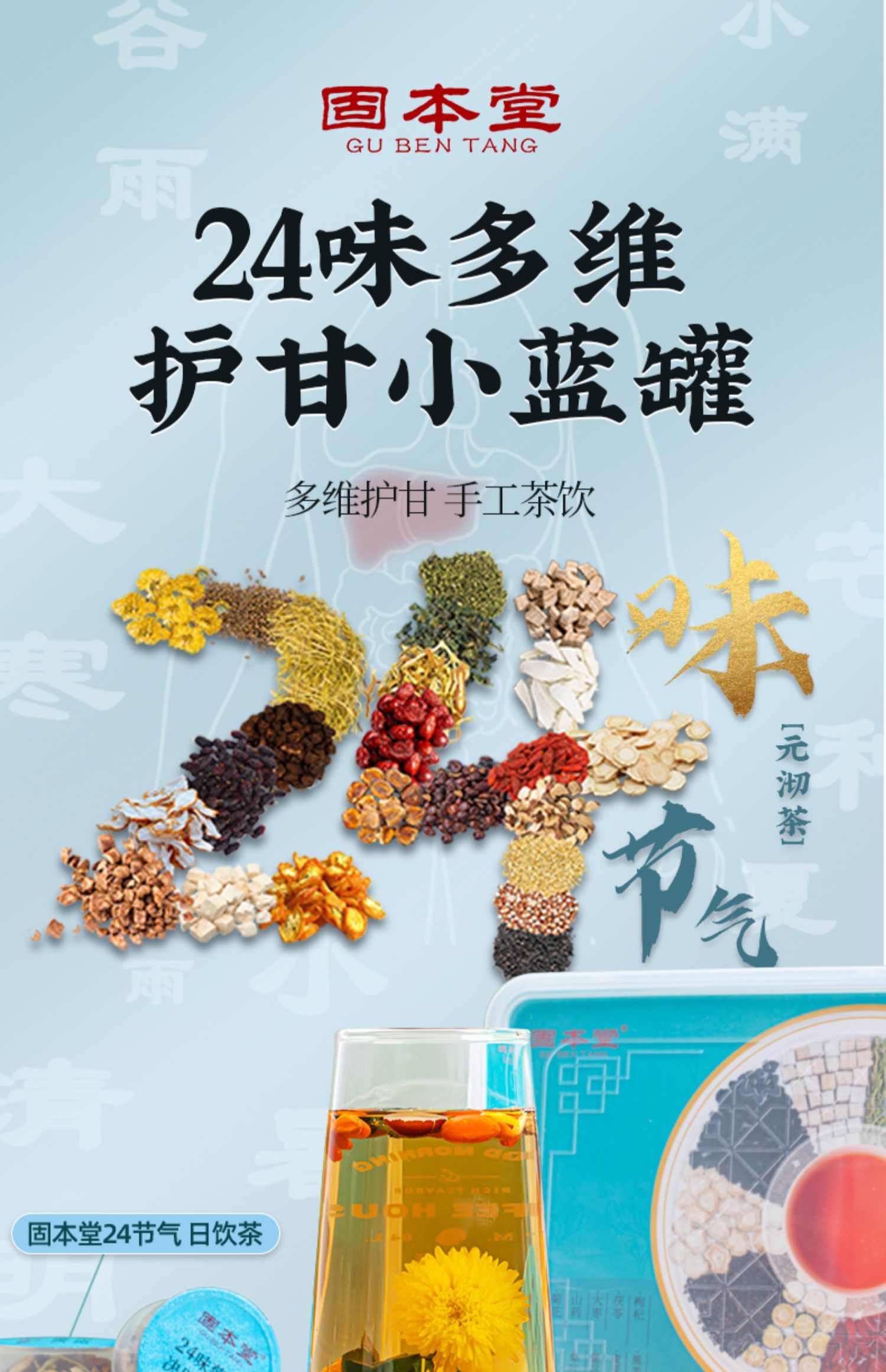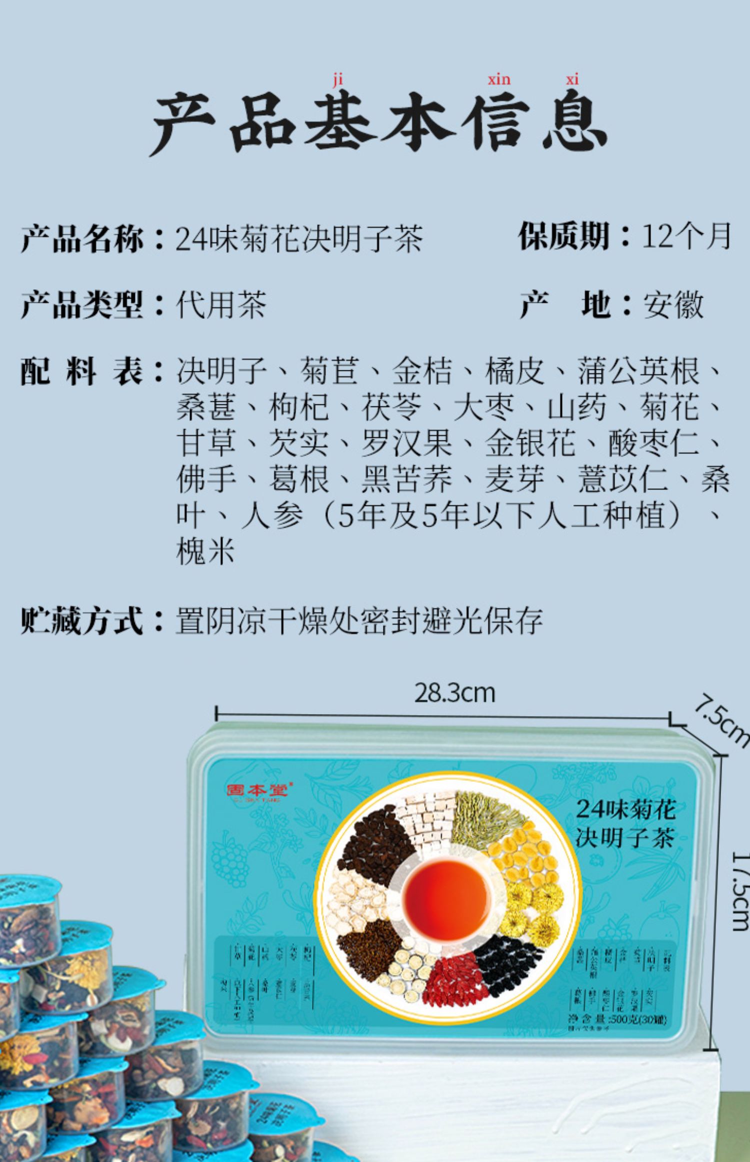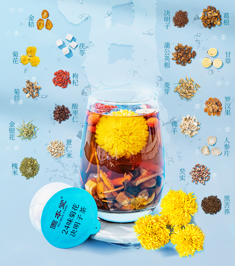 固本堂24味菊花枸杞决明子茶500克盒 养生茶熬夜茶/益甘茶(单位:盒) 水蓝色